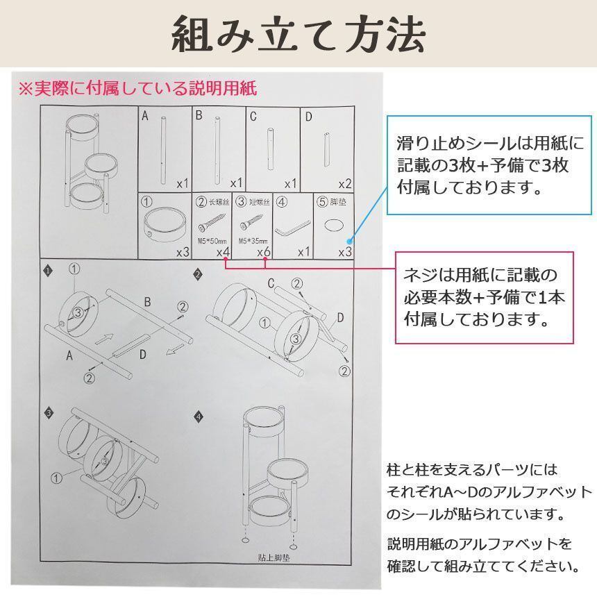 フラワースタンドの柱に貼る用の滑り止めシールを付属いたします。