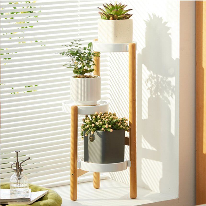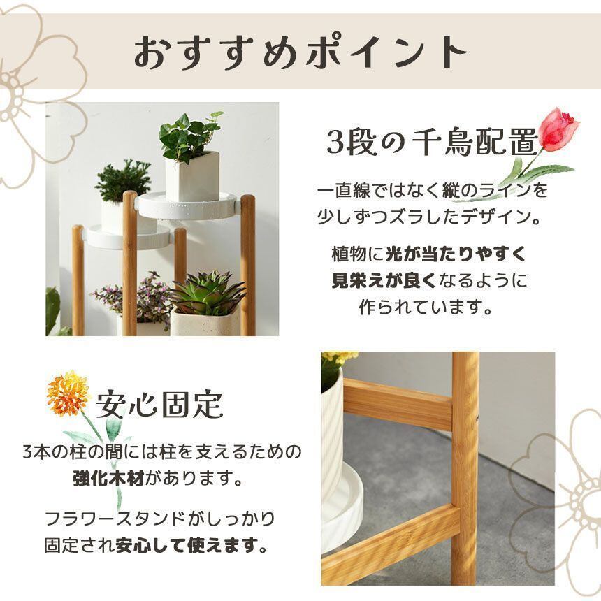 新品 フラワースタンド 花 台 3段 3鉢 鉢置き 鉢置き台 プランター 植物スタンド ラック ガーデニング 植木鉢 盆栽 園芸 棚 収納 鉄素材 竹素材 kkkbtt