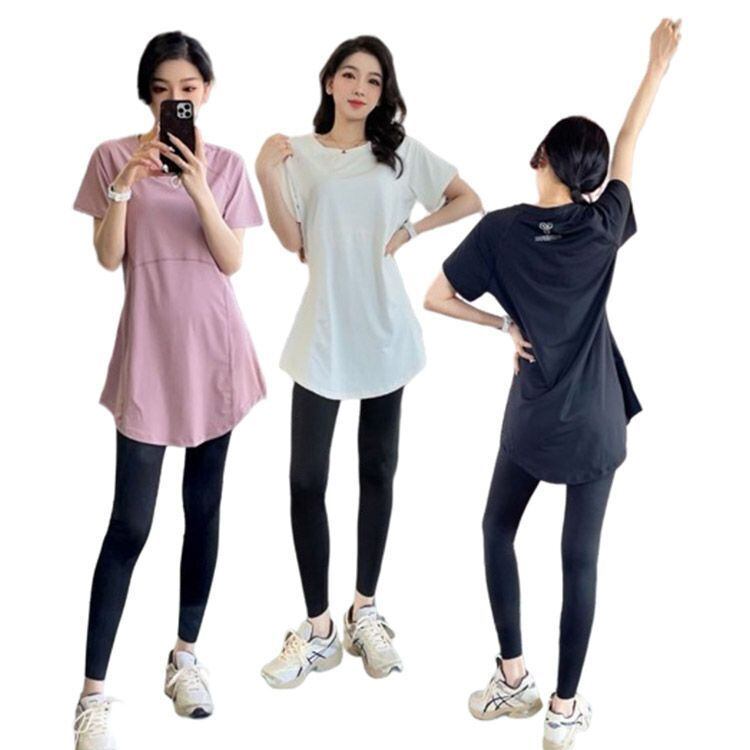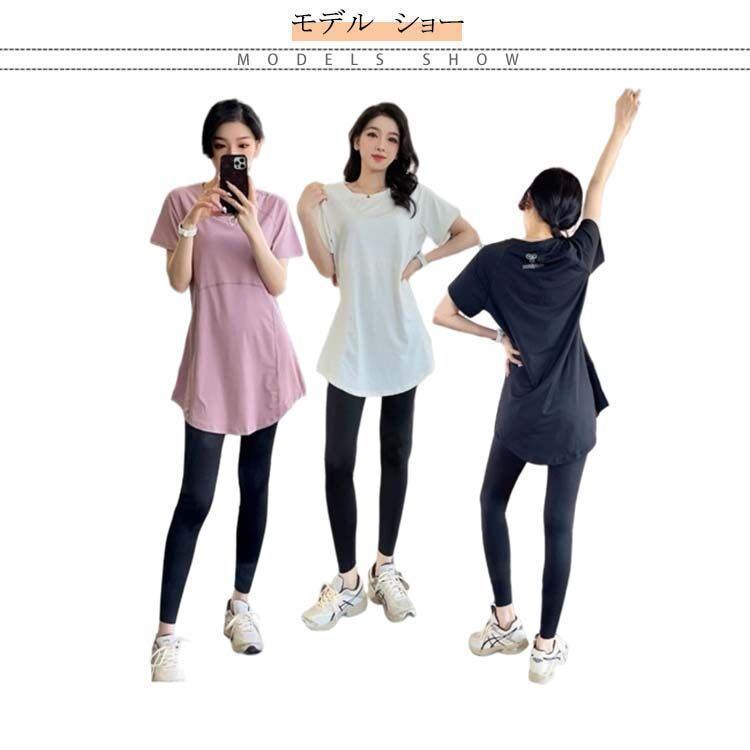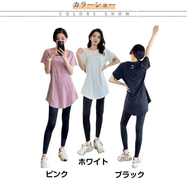 新品 ヨガウェア 上下セット 速乾 レディース 半袖 tシャツ レギンス ヨガトップス ピラティス ウェア ロング丈 おしゃれ スポーツウェア ホットヨガ フィットネス 大きいサイズ ドライ 無地 スパッツ kkkegl
