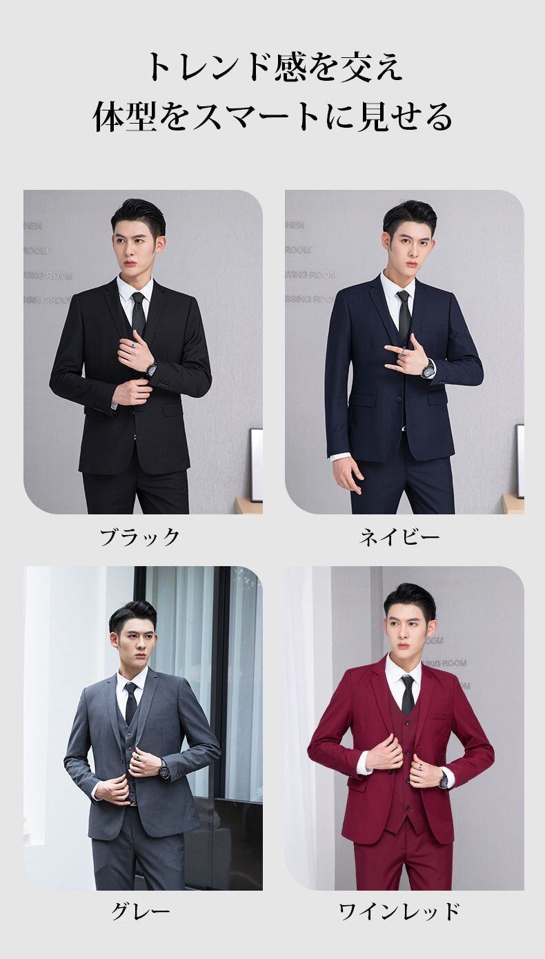 ブラック(二つボタン)、ネイビー(二つボタン)、グレー(二つボタン)、ワイン(二つボタン)