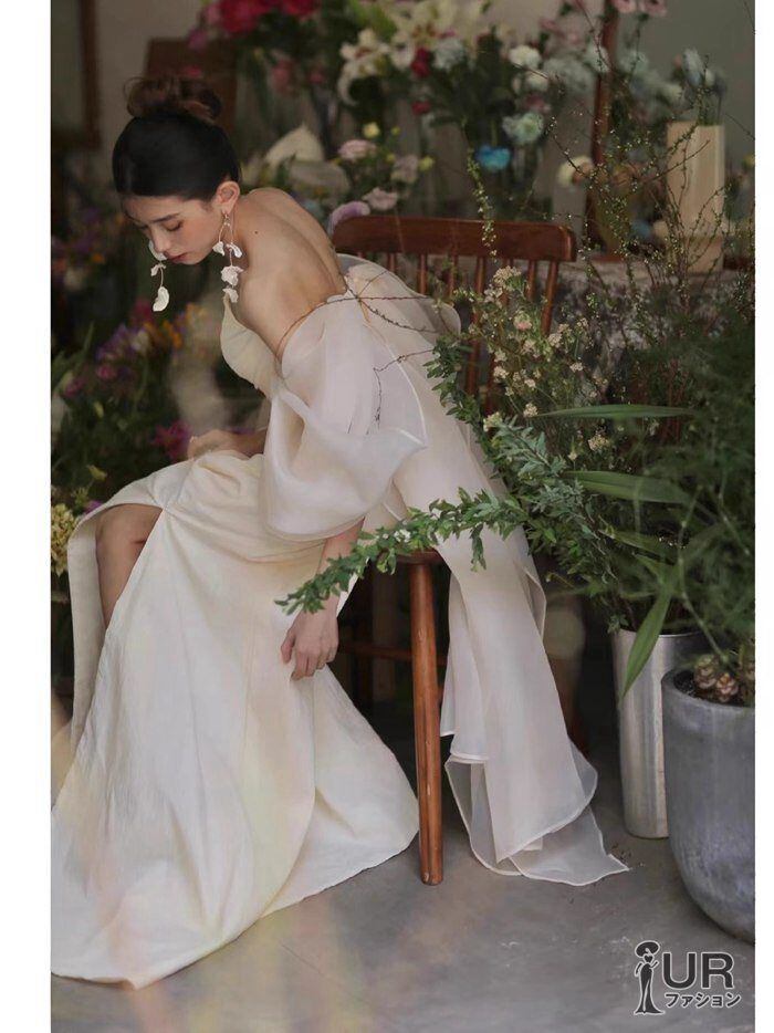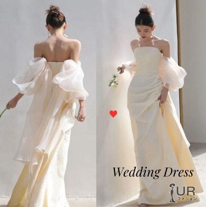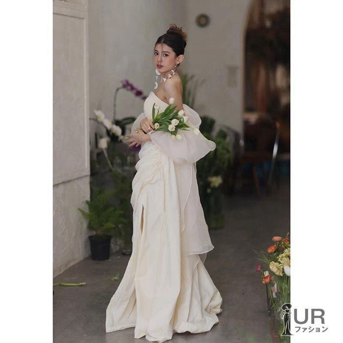 前撮りドレス ウェディングドレス マーメイド ウエディングドレス 二次会ドレス花嫁 オフショルダー オフショル 袖あり 前撮り ドレス 花嫁かわいい 花嫁二次会ドレス フォトウェディング セルフ 可愛い シンプル 後撮り 結婚式