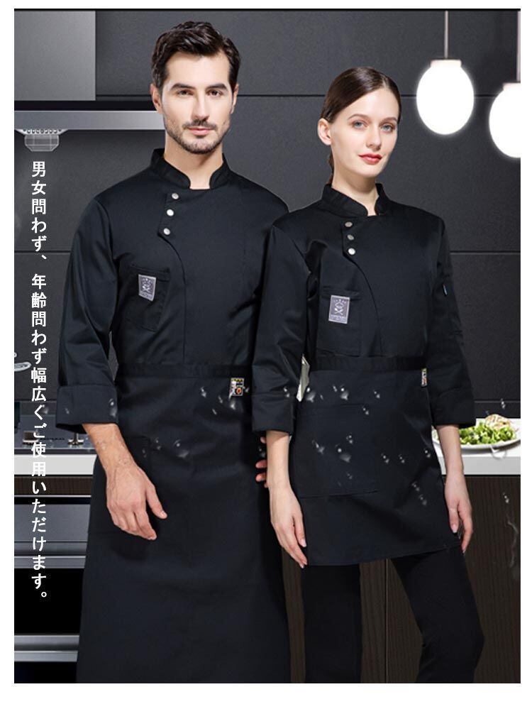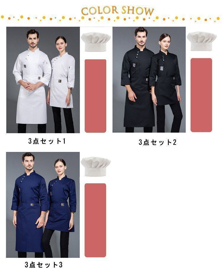 新品 防水 コックコート エプロン 帽子 3点セット メンズ レディース 男女兼用 長袖 カフェ 飲食店 厨房 サービス業 制服 レストラン ユニフォーム セット パン屋 調理服 M L XL 2XL 3X kkkdiu
