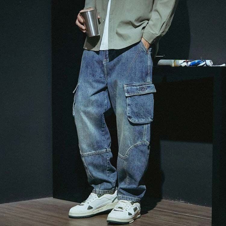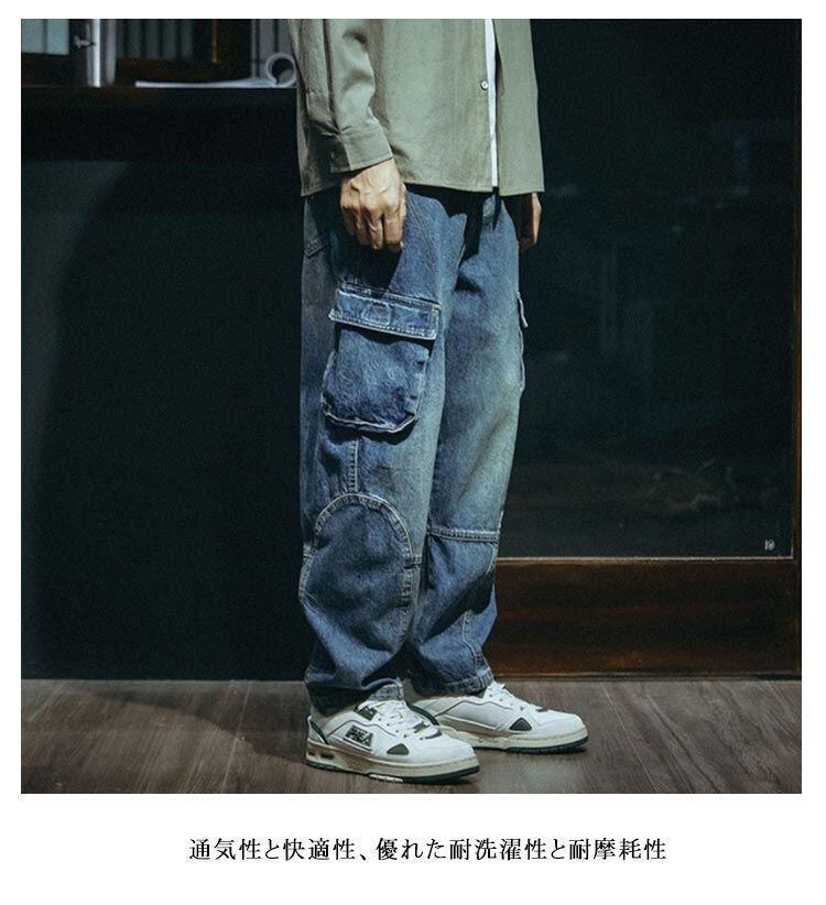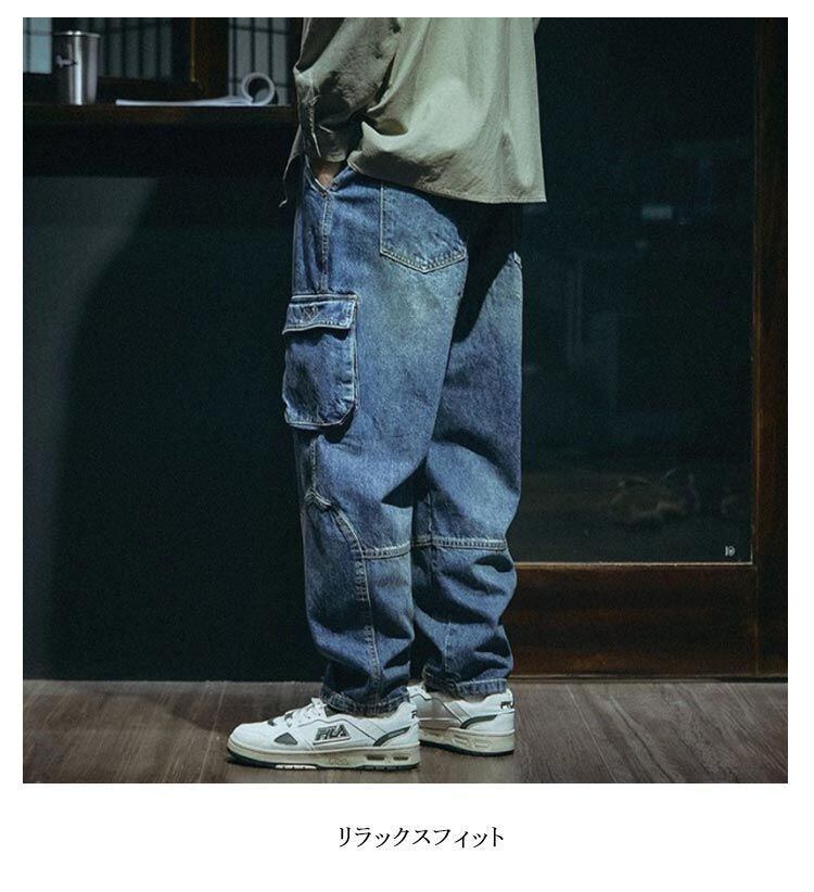 新品 M-5XL ワイドパンツ デニムパンツ 6ポケット メンズ ジーパン デニム カーゴパンツ 太め ストリート ポケット付き 春 夏 秋 kkkujl