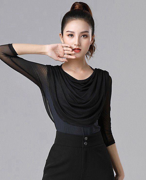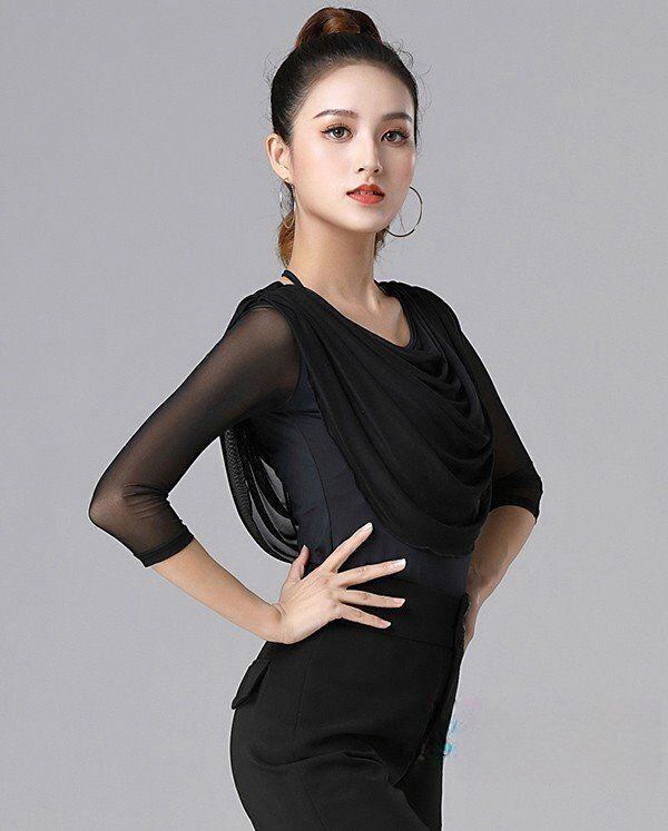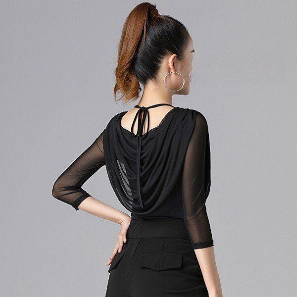 社交ダンス トップス 社交ダンス衣装 トップス 大きいサイズ ダンス用シャツ フリル ダンスTシャツ 社交ダンス ラテンダンス ダンスウェア 練習着 七分袖 カラオケ衣装 レッスンウェアS1D7