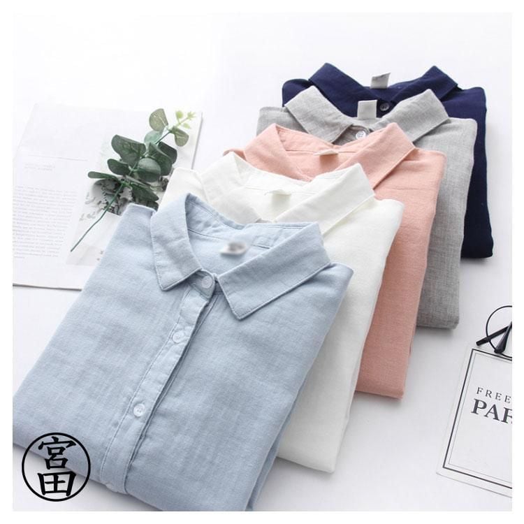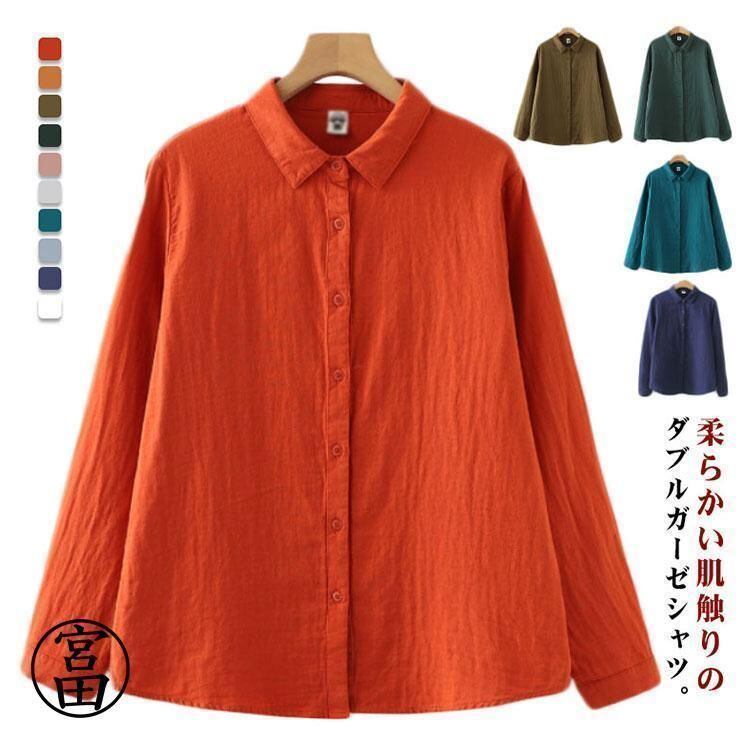 新品 秋服 ガーゼ シャツ ブラウス レディース 長袖 ガーゼシャツ ダブルガーゼ 綿 トップス 秋 春 無地 柔らかい ナチュラル kkkjtk