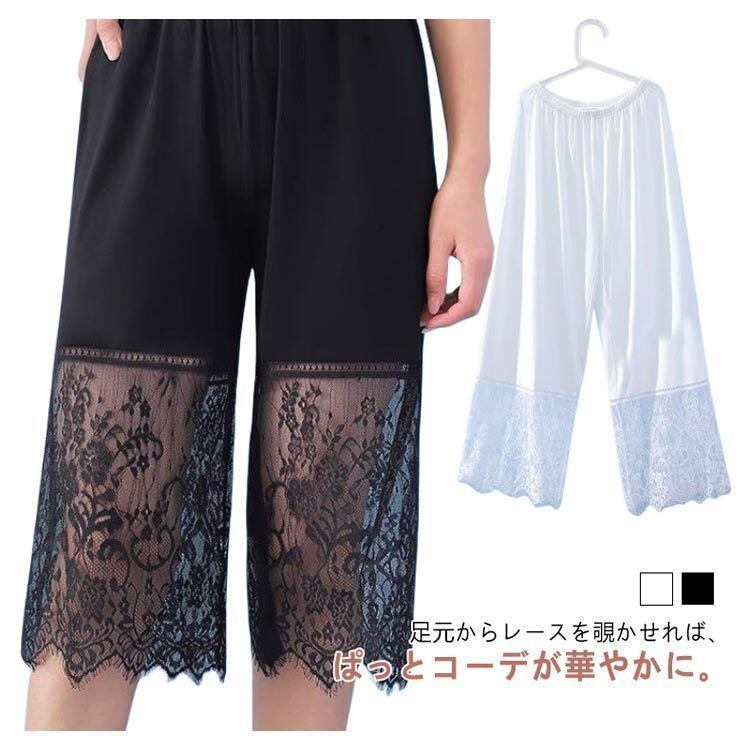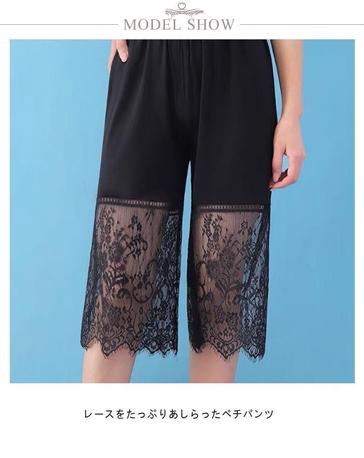 新品 ペチパンツ レース ワンピースの透け防止に! レディース パンツ ペチコート ボトムス インナー レイヤード シアー 重ね着 切り替え 九分丈 ウェストゴム ロングパンツ 下着 涼しい 薄手 大人可愛 kkkmvd