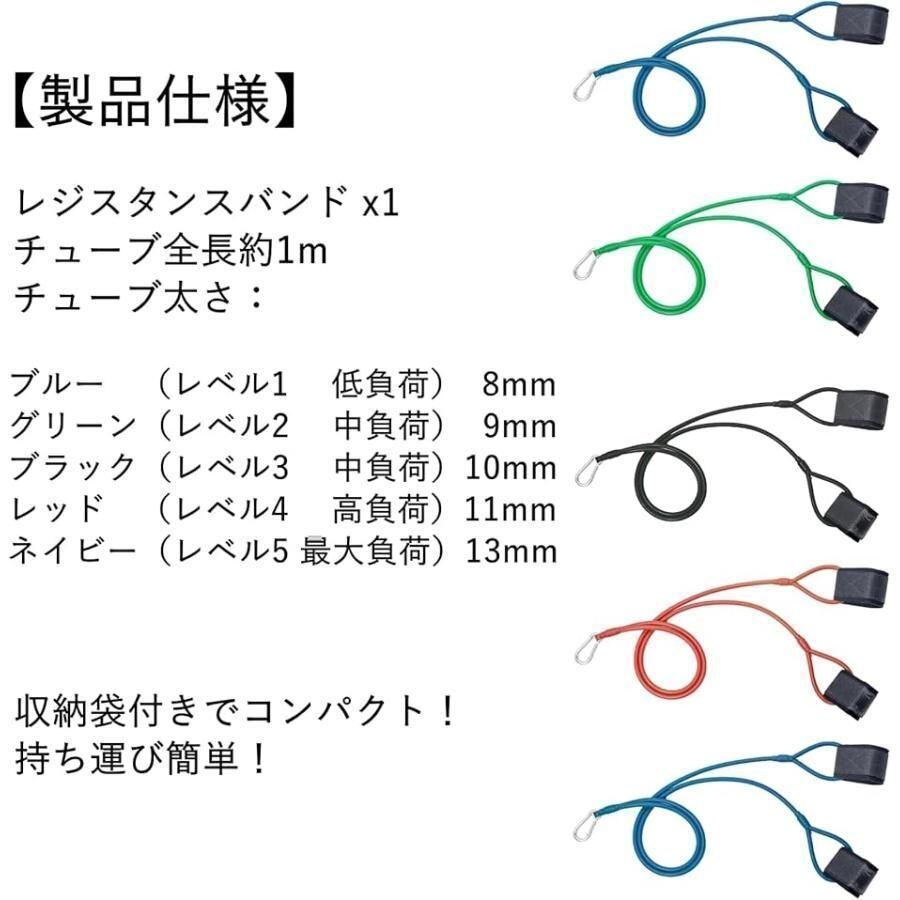 「製品仕様」トレーニングチューブx1点 収納袋x1点 固定バンドx2点 カラビナx1点