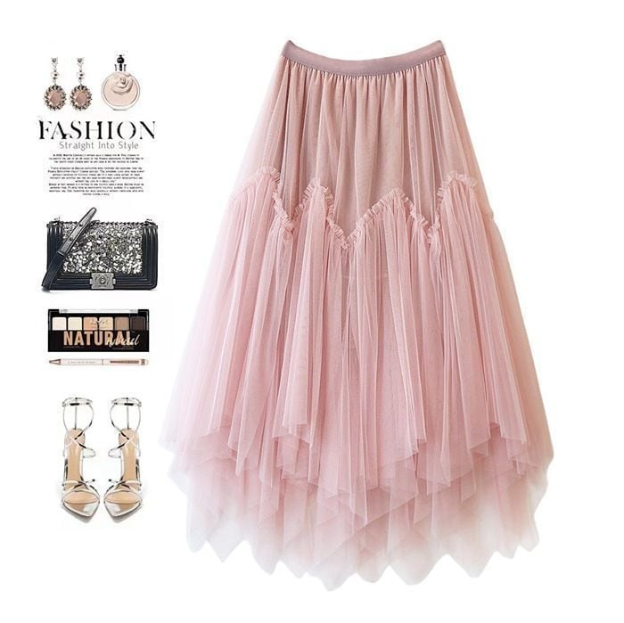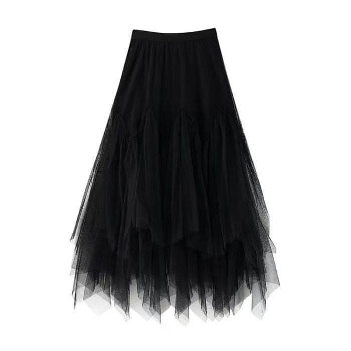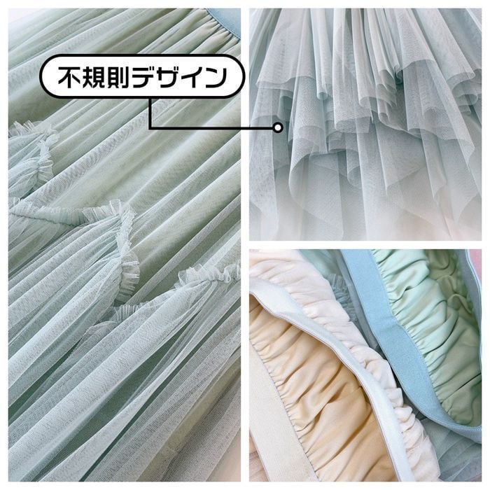 新品 チュールスカート レディース スカート お花見 桜 さくら 不規則 ロングスカート フレアスカート マキシ ウエストゴム フリル ボリューム ファッション ゆったり 動きやすい 夏 春 体型カバー きれいめ kkkhon