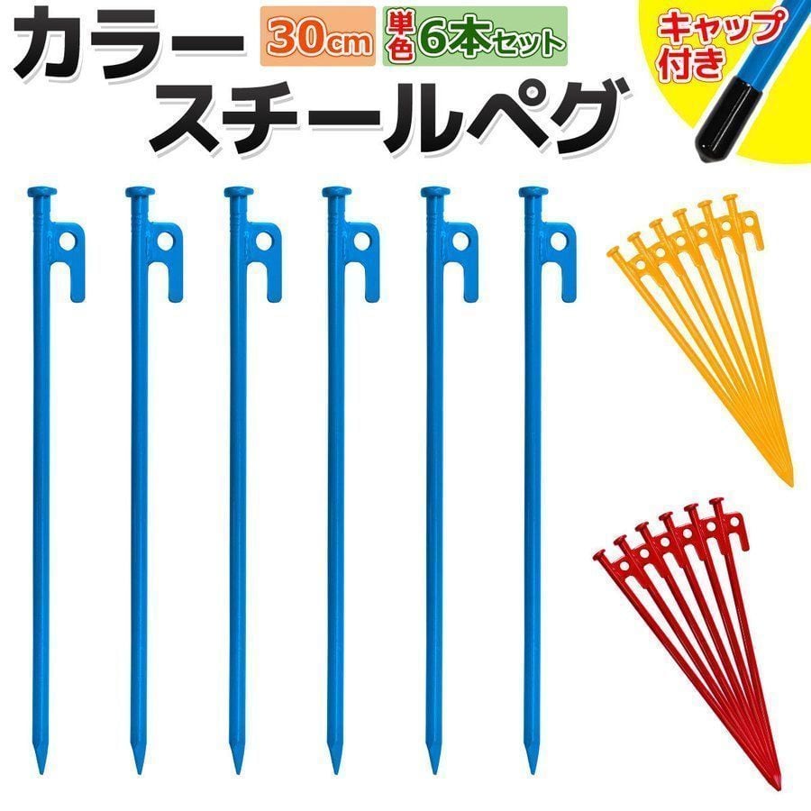 新品 カラーペグ スチール 30cm アウトドア ペグ 6本セット kkkpmy