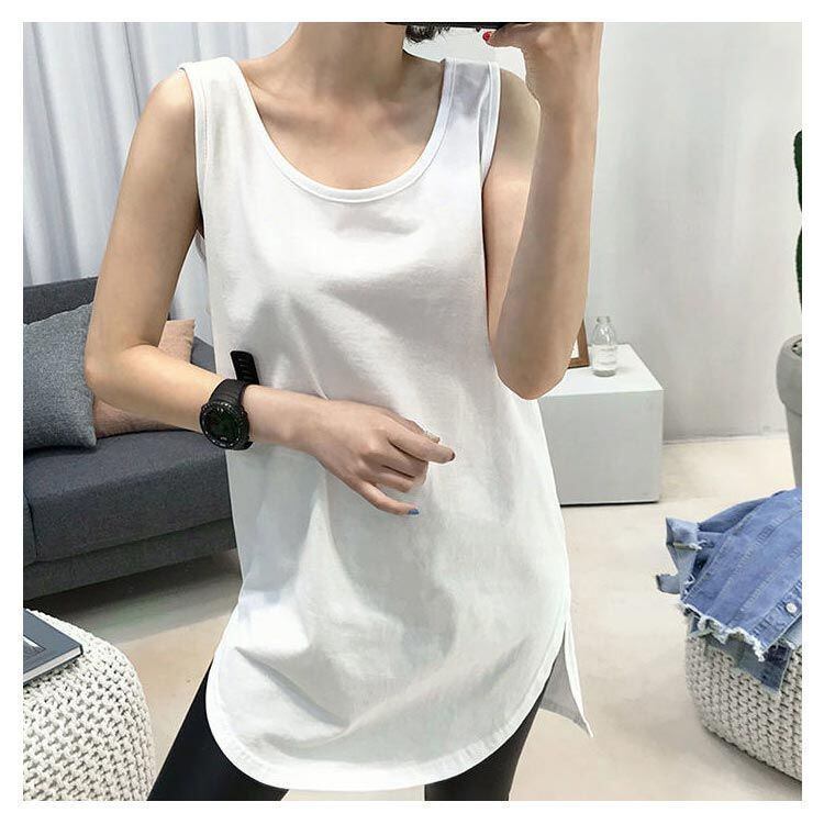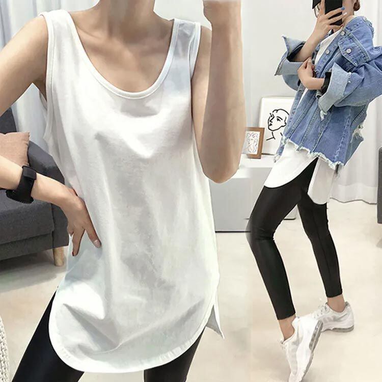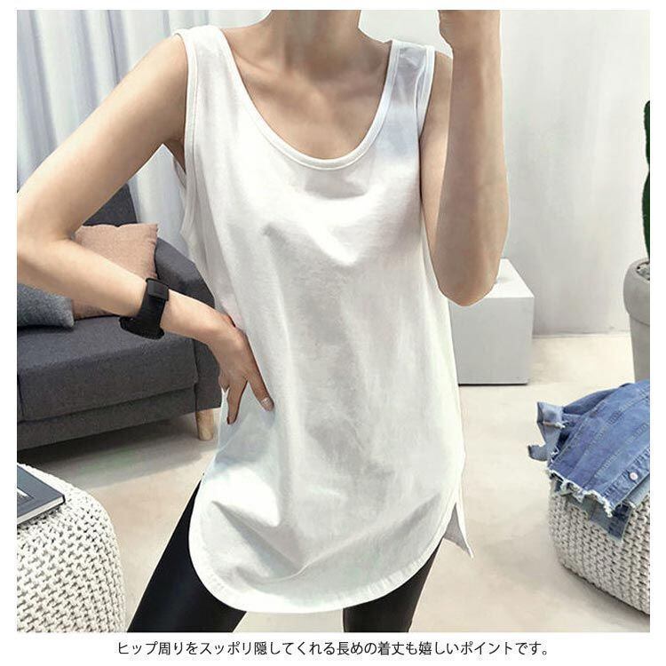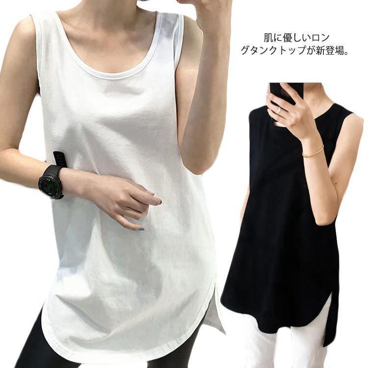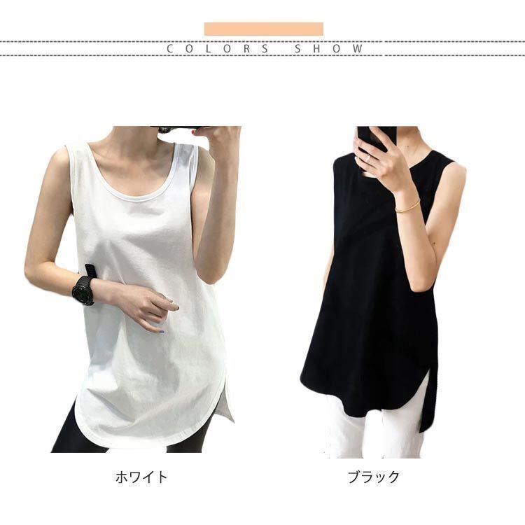 新品 タンクトップ ロング丈 ノースリーブ トップス レディース レイヤードタンクトップ つけ裾 付け裾 スリット 重ね着 キャミソール インナー 肌着 下着 綿 コットン 大きいサイズ 無地 ゆったり カ kkkqks