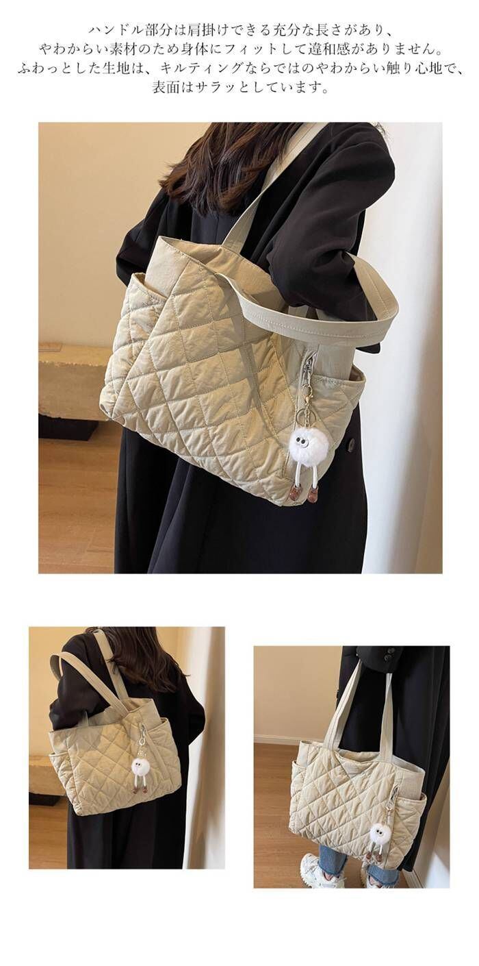 キルティング バッグ レディース トートバッグ マザーズバッグ 大きめ A4 ファスナー付き 大容量 通勤 鞄 かばん 肩掛け 軽量 ポケット ドリンクホルダー 通学バッグ 仕事 旅行 実用的 スマホ ノート 黒