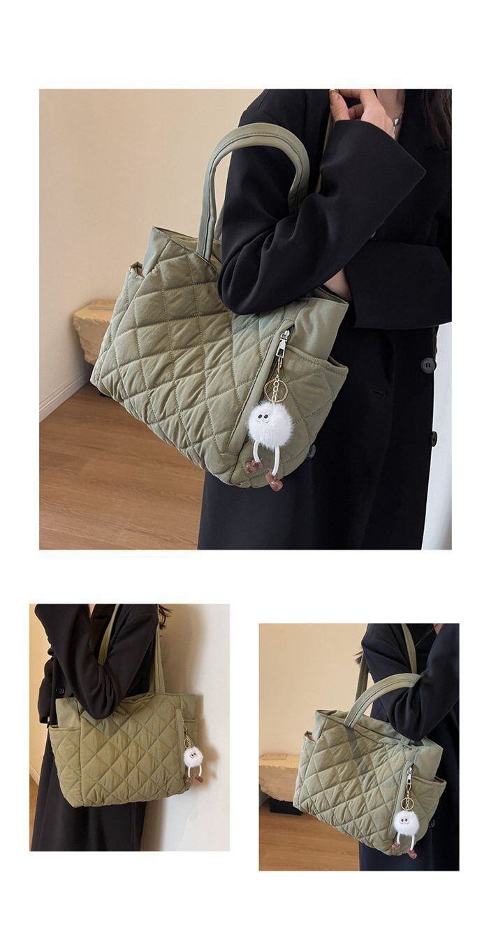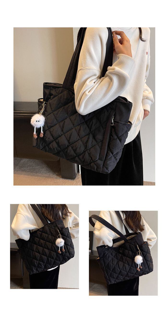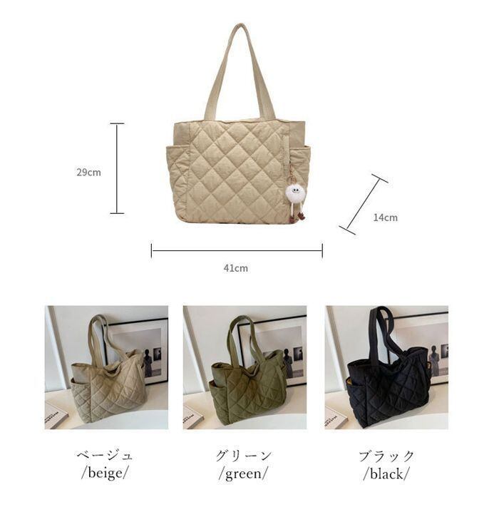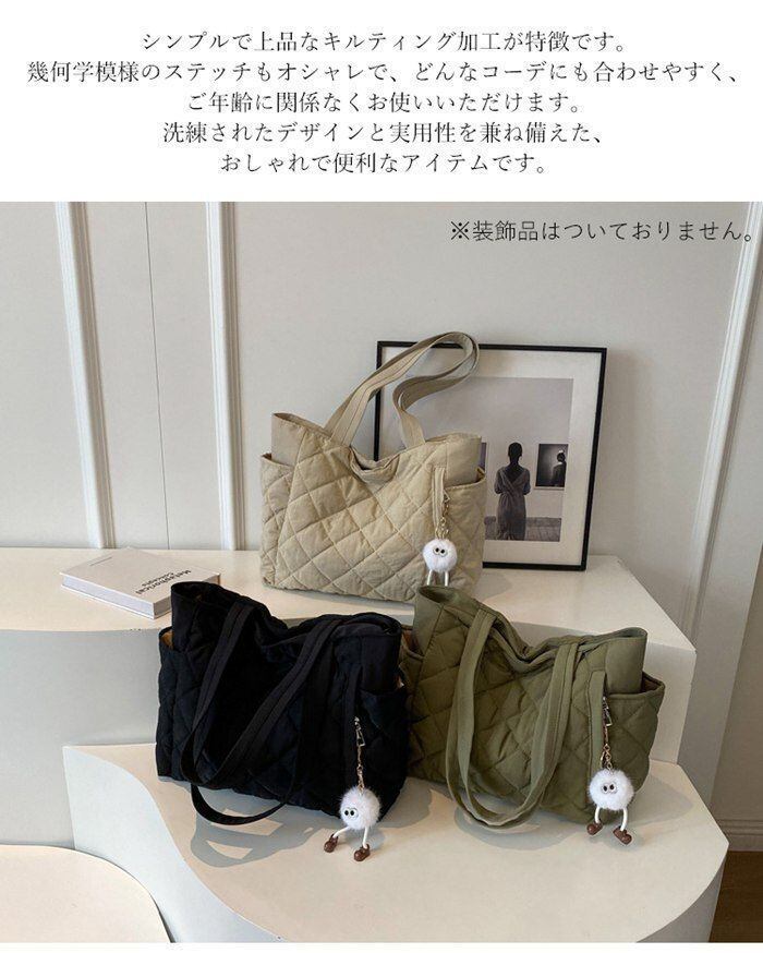新品 キルティング バッグ レディース トートバッグ マザーズバッグ 大きめ A4 ファスナー付き 大容量 通勤 鞄 かばん 肩掛け 軽量 ポケット ドリンクホルダー 通学バッグ 仕事 旅行 実用的 スマホ ノート 黒 kkktzj