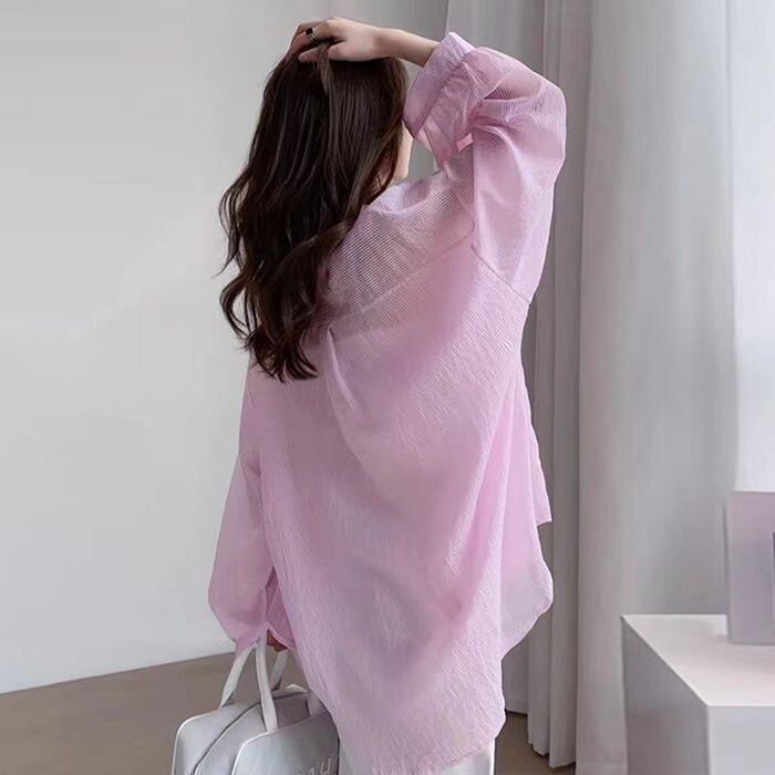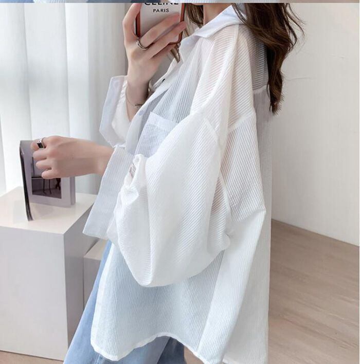 新品 シアーシャツ レディース 長袖 UV対策 紫外線対策 冷房対策 ゆったり 透け感 大きいサイズ シアー 光沢感 シースルー kkkzdr