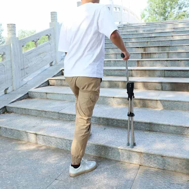 歩くときは折りたたんで杖として、休む時はイスとして使用できます。