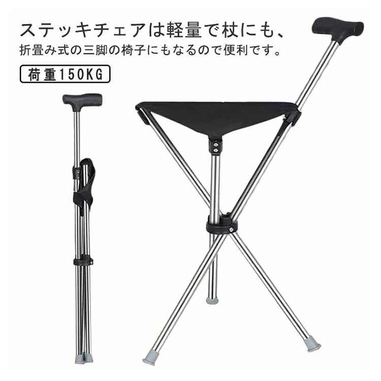 新品 ステッキチェア 軽量 折りたたみ イス 杖 三脚 ステッキ チェアー 椅子 イス 3本脚 休憩 女性 介護 座れる杖 座れるステッキ 歩行補助杖 軽量 コンパクト 杖 椅子 腰痛 旅行 アウトドア 釣 kkkead