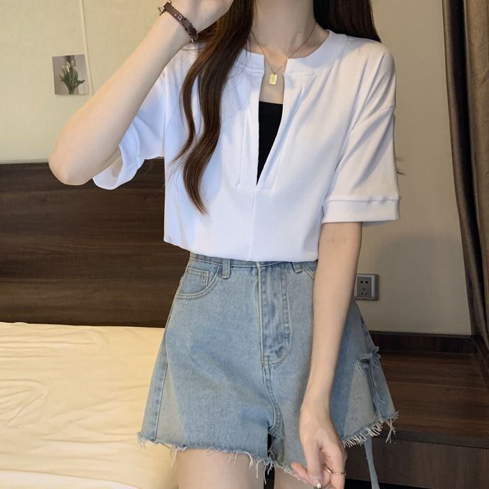 新品 Tシャツ ブラウス 半袖 レディース 無地 女性用 エレガント 夏服 ゆったり シンプル 涼しい きれいめ 夏 通勤 柔らかい 薄手 大人 kkkkpt