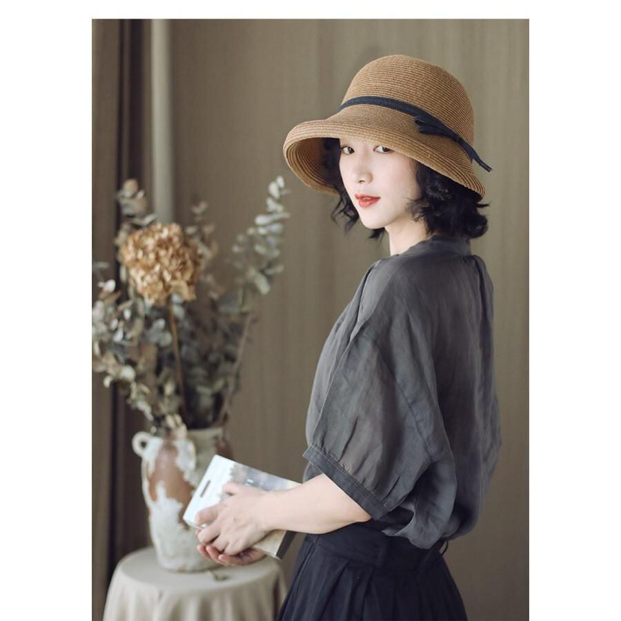 新品 麦わら帽子 春夏 麦わらハット レディース 大きめ 遮光 夏 バケットハット 麦わら つば広 UV リボン おしゃれ リゾート ハット 折りたたみ kkkxsd