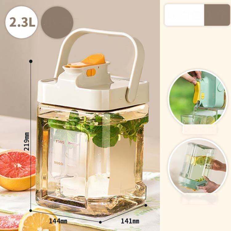 新品 麦茶ポット 横置き 2.3L 冷水筒 ウォーターボトル 冷蔵庫ポット お茶ポット 水差し 耐熱 洗いやすい ロック付き お茶ボトル 洗いやすい 漏れない 広口 冷茶ボトル 水タンク 密封性がよい 家庭 kkkcde