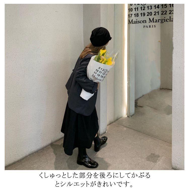 くしゅっとした部分を後ろにしてかぶるとシルエットがきれいです。