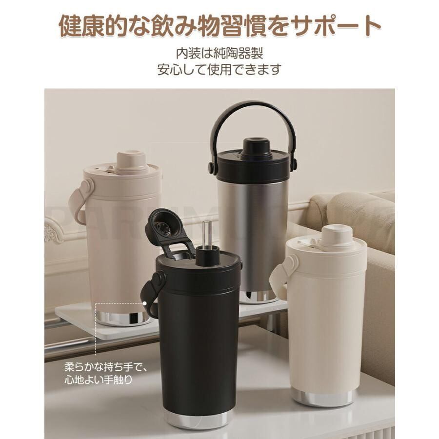 新品 セラミック タンブラー 水筒 ストロータンブラー ストロー付き 茶葉フィルター付き 持ち運び おしゃれ 蓋付き こぼれない 500ML 大容量 コ kkkfqn