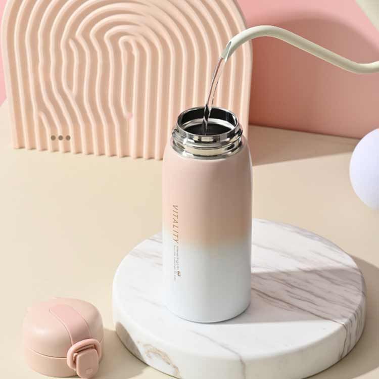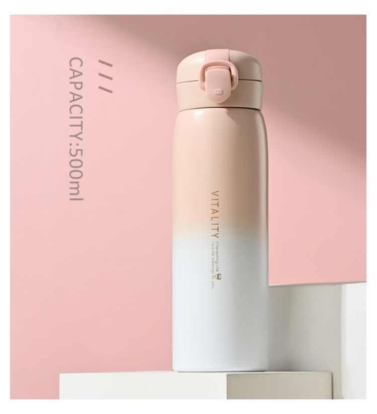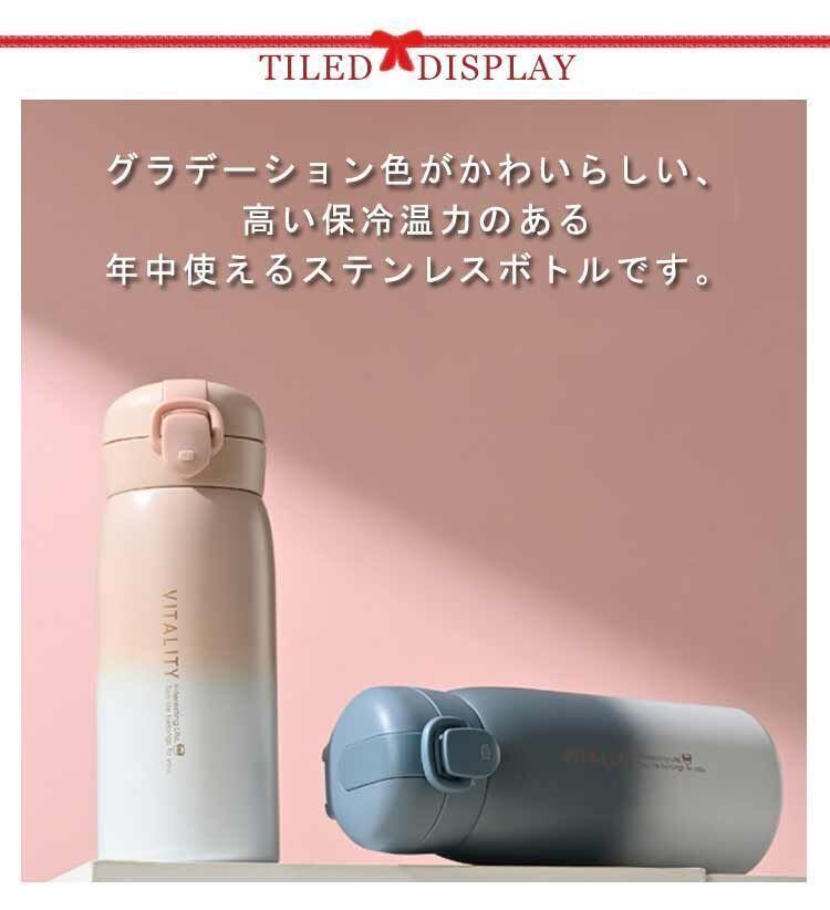 グラデーション色がかわいらしい、高い保冷温力のある年中使えるステンレスボトルです。