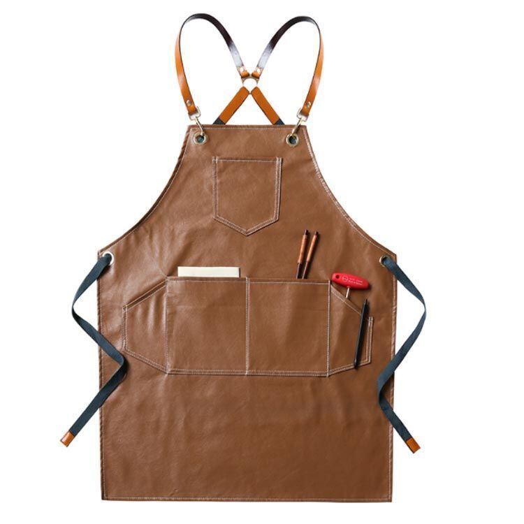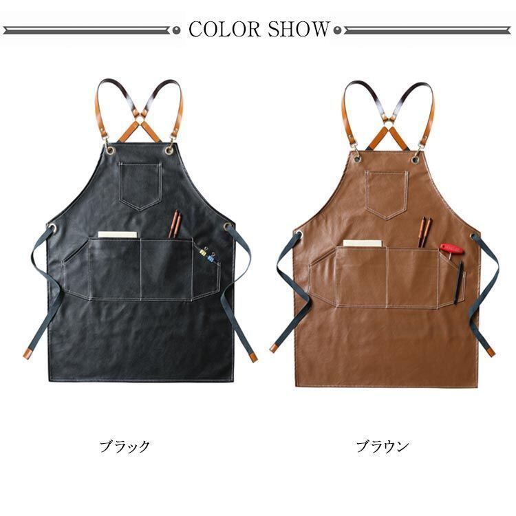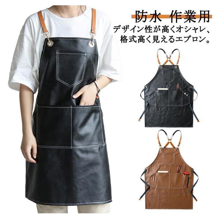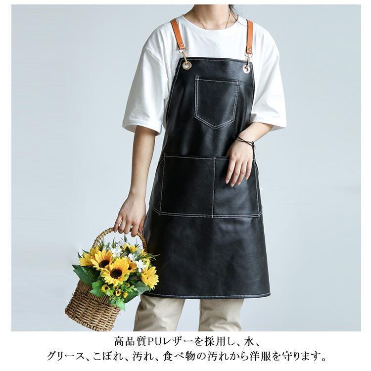 新品 防水エプロン PUレザー エプロン おしゃれ 業務用 喫茶店 美容師 カフェ 保育士 キッチン メンズ レディース 男女兼用 北欧 ロング丈 バッククロス ポケット付き 作業用 ガーデニング 水場 汚 kkkddl