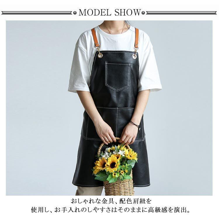 高品質PUレザーを採用し、水、グリース、こぼれ、汚れ、食べ物の汚れから洋服を守ります。