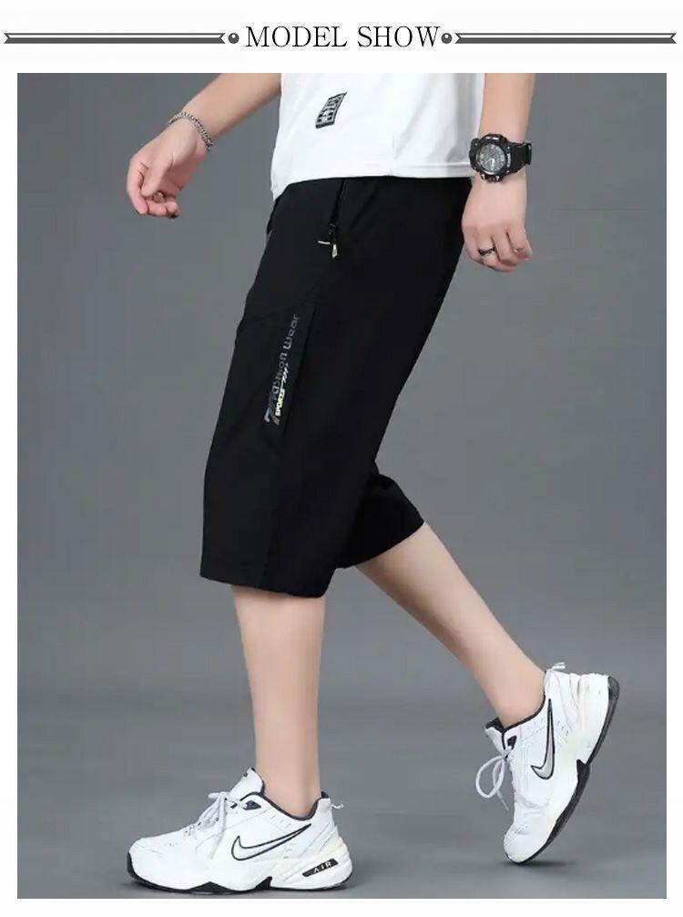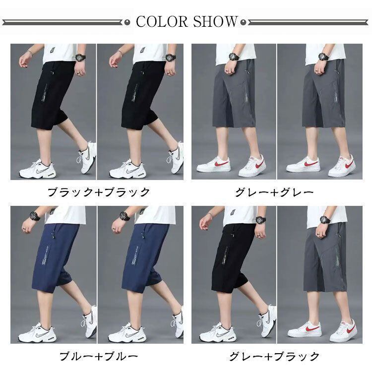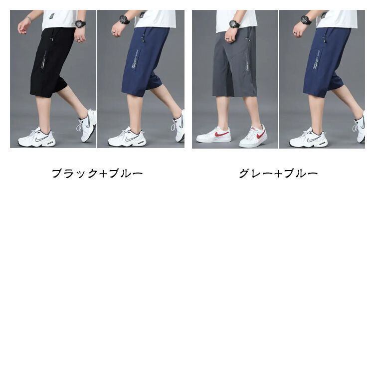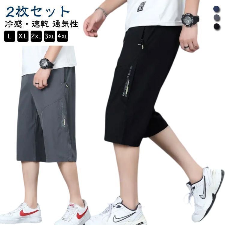 新品 【2枚セット】膝下丈 冷感 メンズ 7分丈パンツ スポーツ 夏 クロップドパンツ サマーパンツ ズボン ひざ下 太め ゆったり チノパン アイスシルクパンツ 大きいサイズ 軽量 薄手 ハーフパンツ 速 kkkvhc