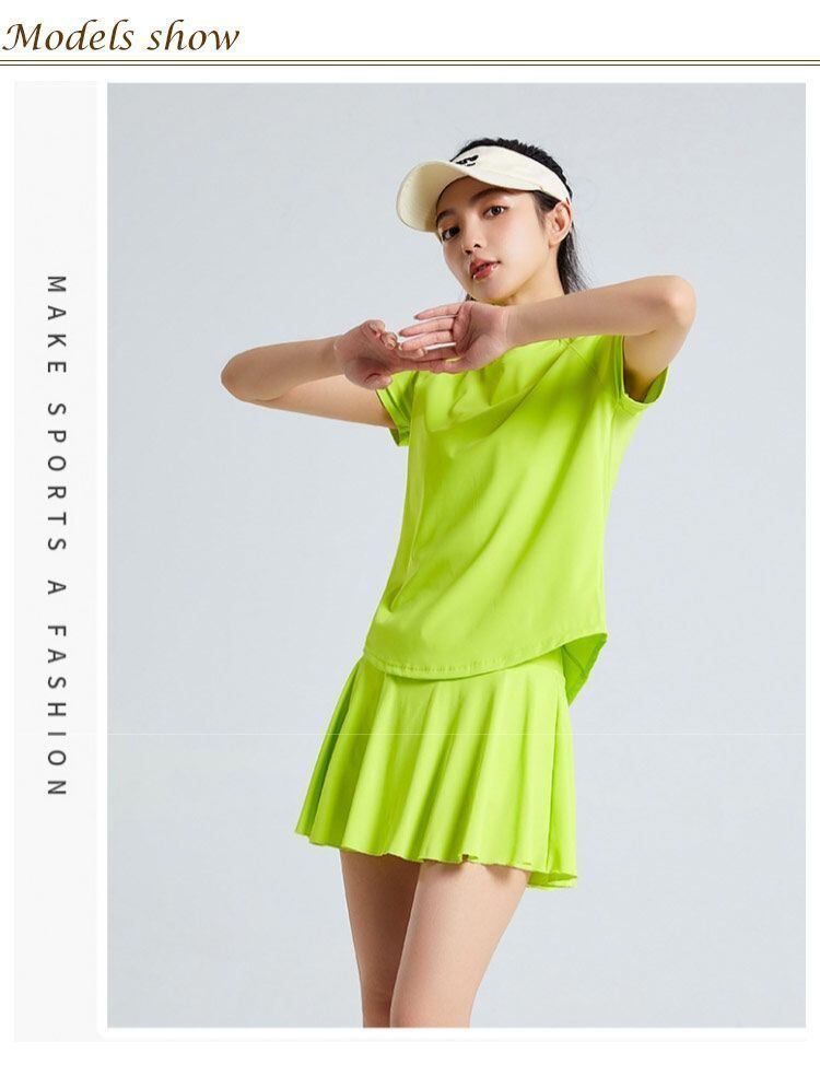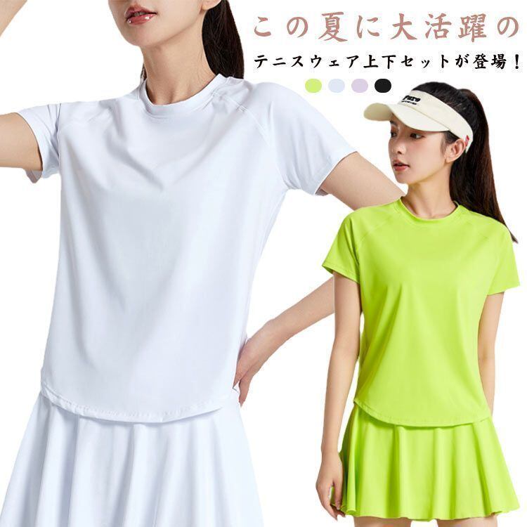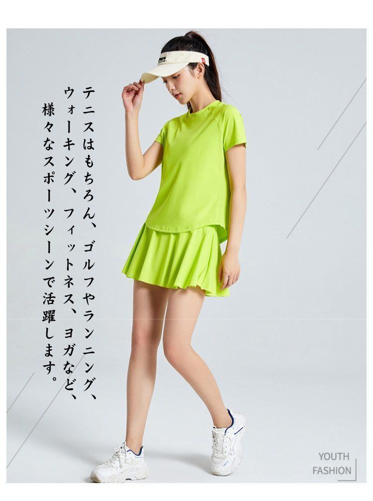 新品 体操服 速乾 ゴルフウェア 半袖Tシャツ+スカート 2点セット テニスウェア 通気 レディース 軽量 スポーツウェア インナーパンツ付き バドミントン トレーニングウェア 運動着 2点セット 着痩せ kkkpww