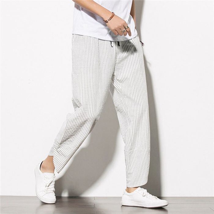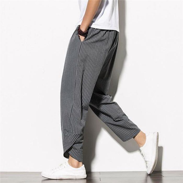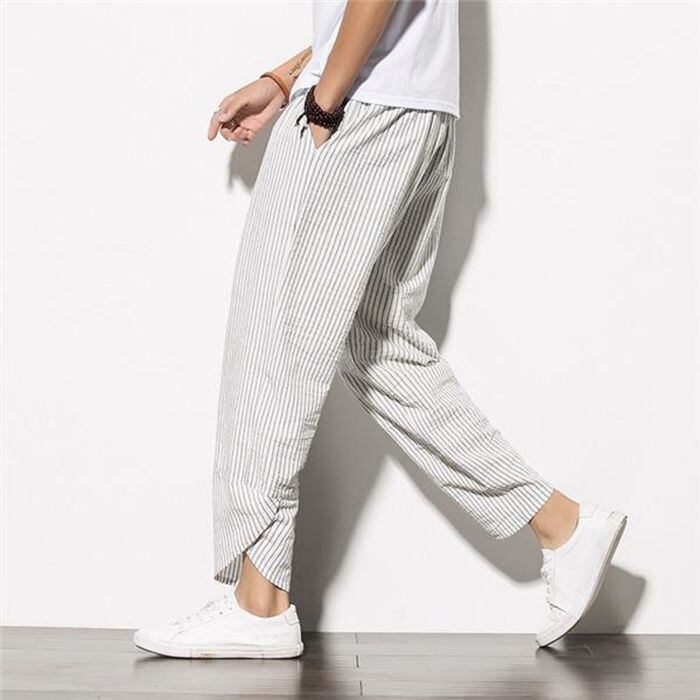 新品 アラジンパンツ サルエルパンツ メンズ ストライプ ジョガーパンツ 綿麻 カジュアル ルームウェア ゆったり おしゃれ カジュアル 夏 kkkyws