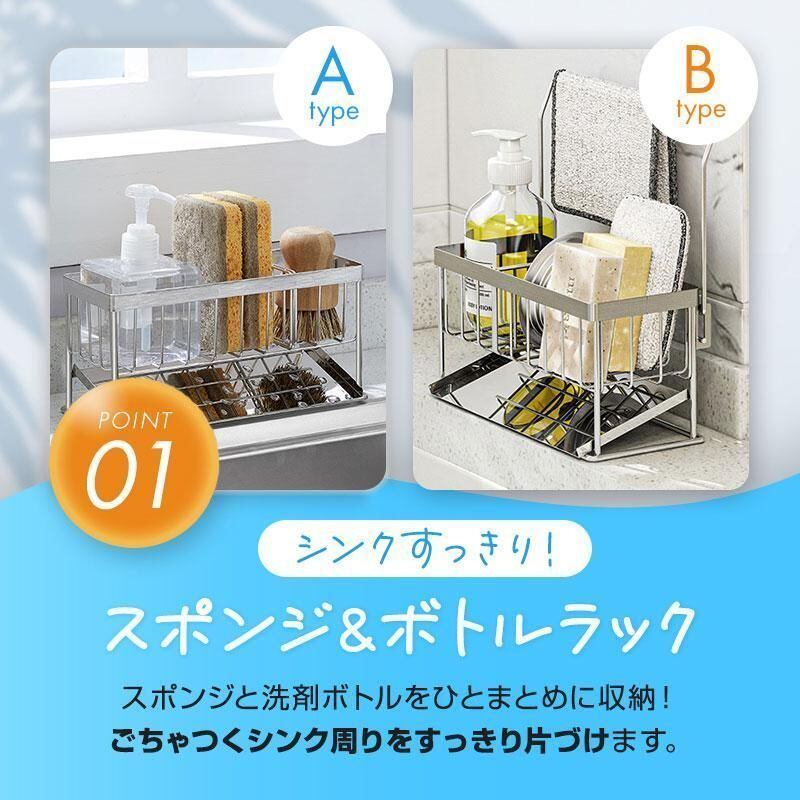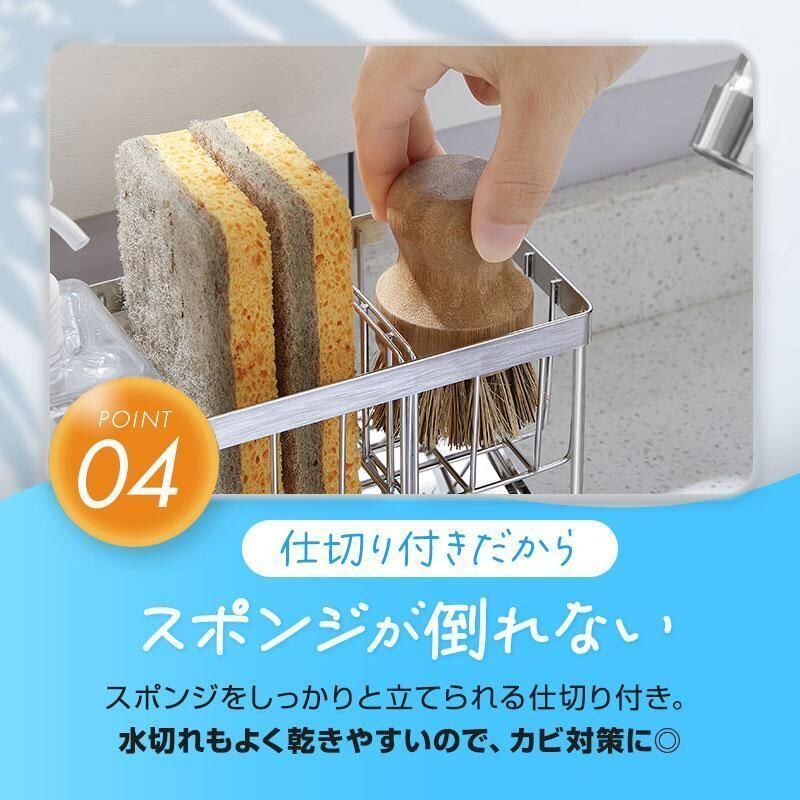 商品名:スポンジ置き キッチン コンパクト 省スペース 洗剤 ラック 水切り ホルダー シンク おしゃれ 台所 ステンレス シンプル 清潔 グッズ 耐久性 衛生的