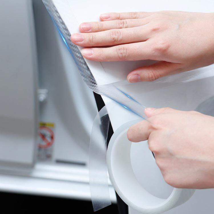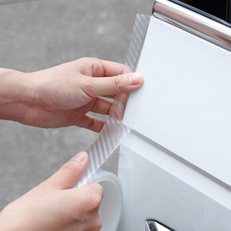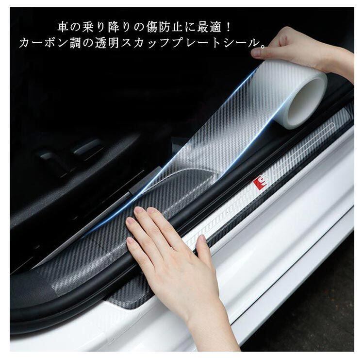 新品 スカッフプレートシール 車 ステッカー カーボン調 透明 ドア 傷防止 サイドステップ 内装 外装 ヤスリクロス 足元傷防止 カーボンシート 汎用 3D エッジモール 保護 kkkgyg