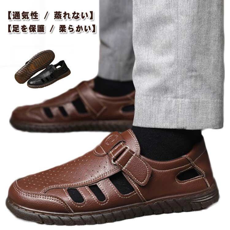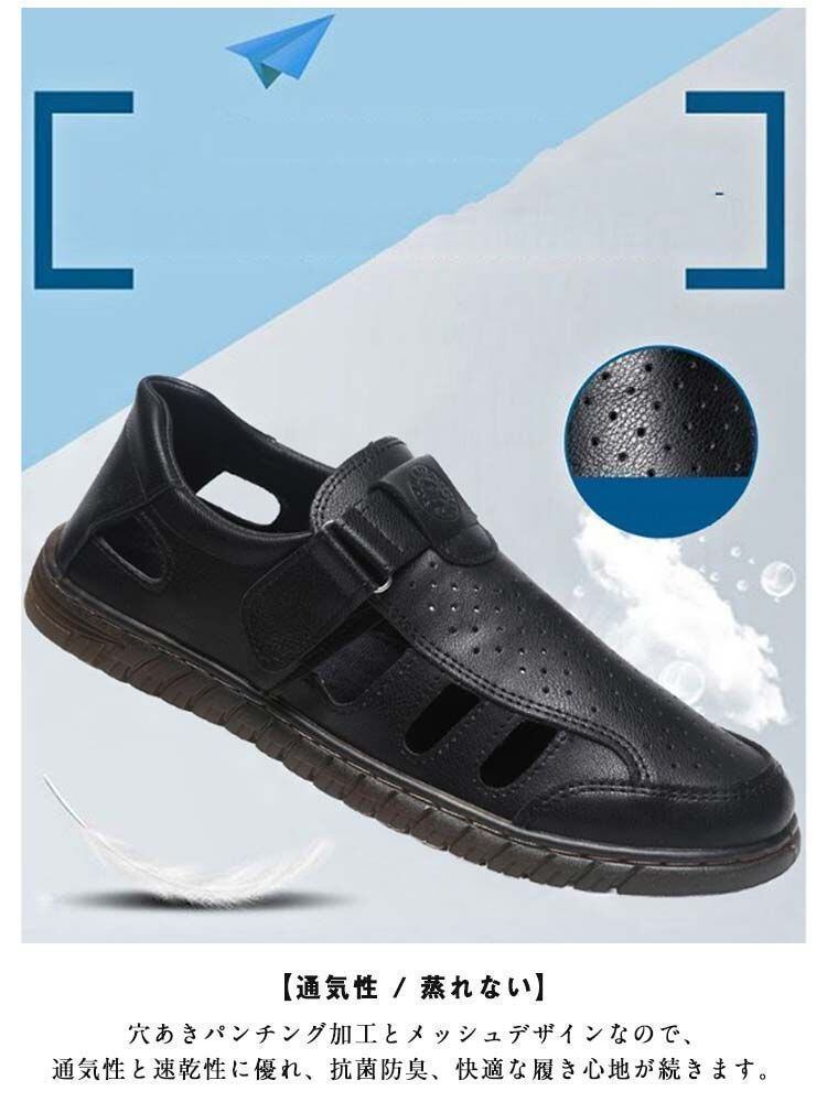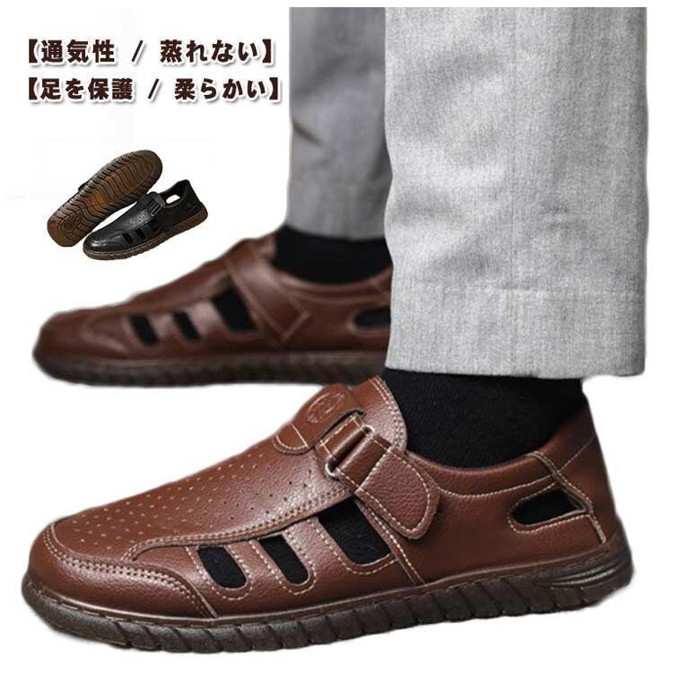 新品 メンズサンダル ビジネスサンダル PUレザー カジュアルサンダル おしゃれ かかとあり 滑り止め 歩きやすい 男性用 オフィスサンダル 外履き 運転 ウォーキング 軽量 通気性 蒸れない オシャレ 夏 kkkjrg