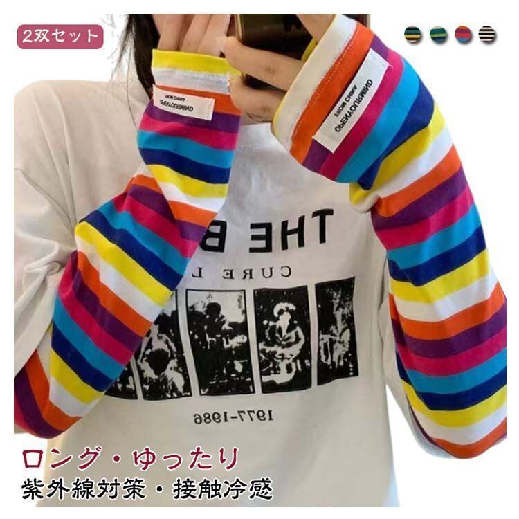 新品 アームカバー 2双セット UVカット レディース ロング UV 紫外線対策 日焼け防止 ロング 接触冷感 ゆったり ひんやり クール 可愛い おしゃれ 幅広 UVアームカバー アーム カバー 通気性 kkkwuw