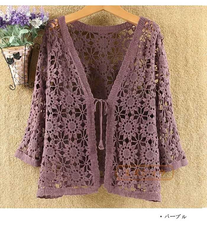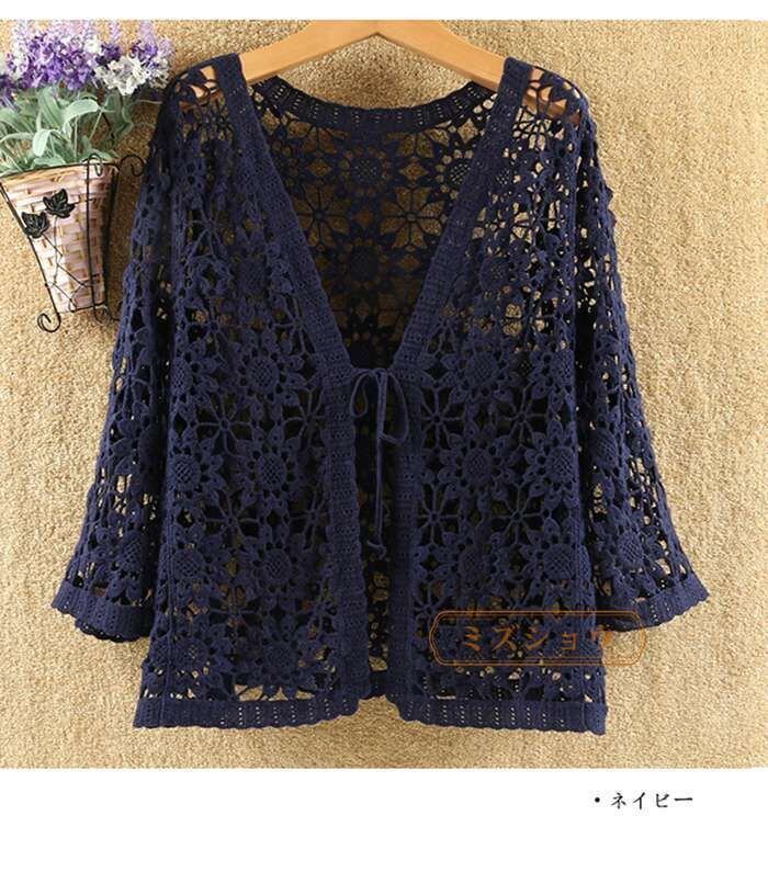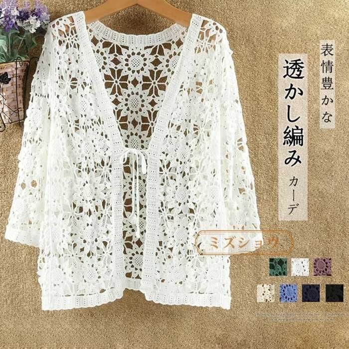 新品 透かし編み カーディガン 夏 七分袖 サマーカーディガン レディース 薄手 きれいめ 花柄 透ける 夏カーディガン レース 柄 リボン サマー 夏用 冷房対策 羽織り 七分袖カーディガン 体型カバー お洒落 大人 kkkzbf