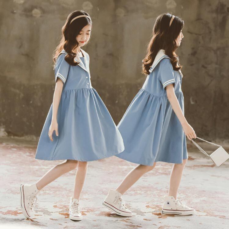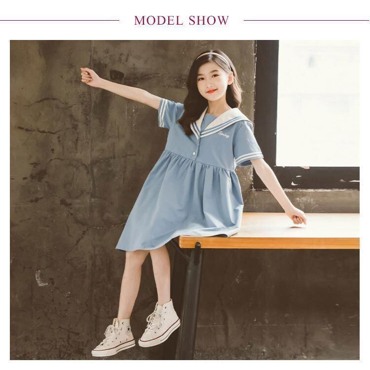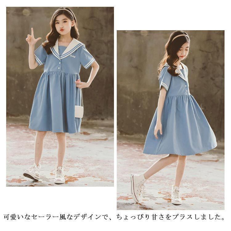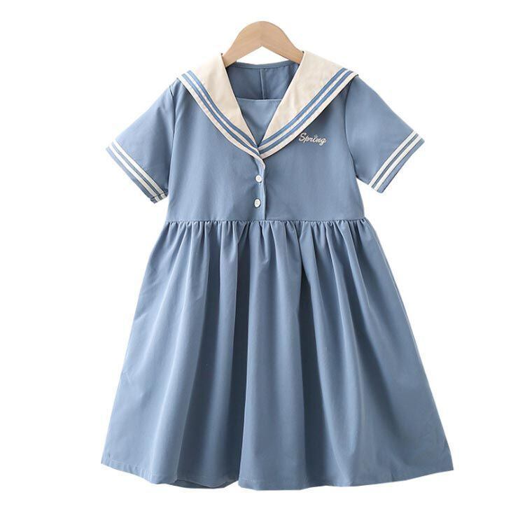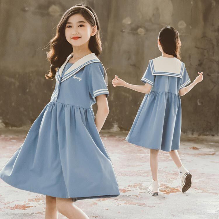 新品 ワンピース 女の子 女児 セーラー服 海軍風 ドレス セーラーワンピース キッズ ガールズ 子供服 半袖 襟付き 制服 夏物 ジュニア 親子ペア 薄手 カジュアル 可愛い ゆったり おしゃれ 通園 通 kkknbz
