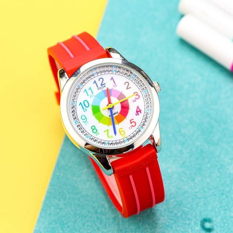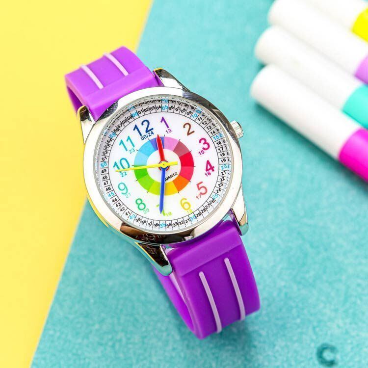 1時間ごとの「色分け」の直感的なデザイン、子供が楽しく学べるおしゃれなキッズウォッチ。
