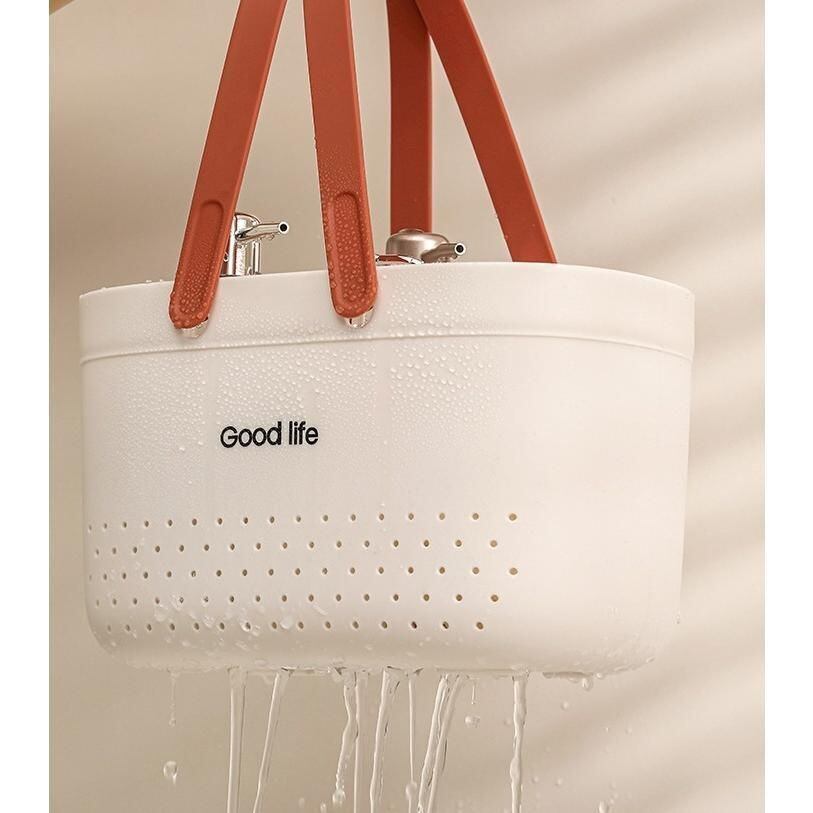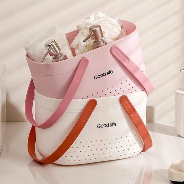 取っ手付きで持ち運びしやすいお風呂バスケット。