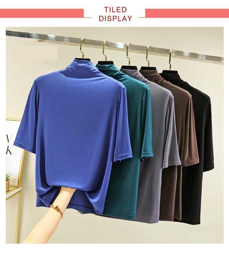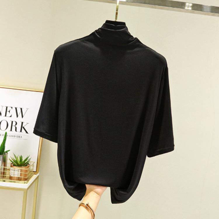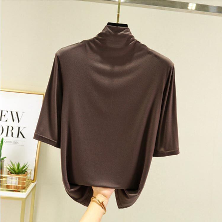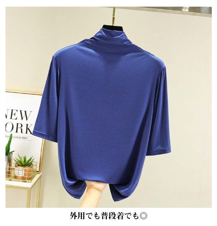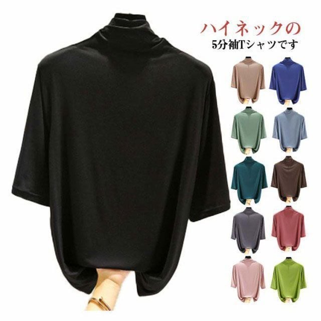 新品 Tシャツ カットソー レディース トップス 半袖 5分袖 ハイネック ハイネックTシャツ タートルネックハイネックカットソー 無地 薄手 夏 春 シンプル カジュアル 大きいサイズ kkkxac