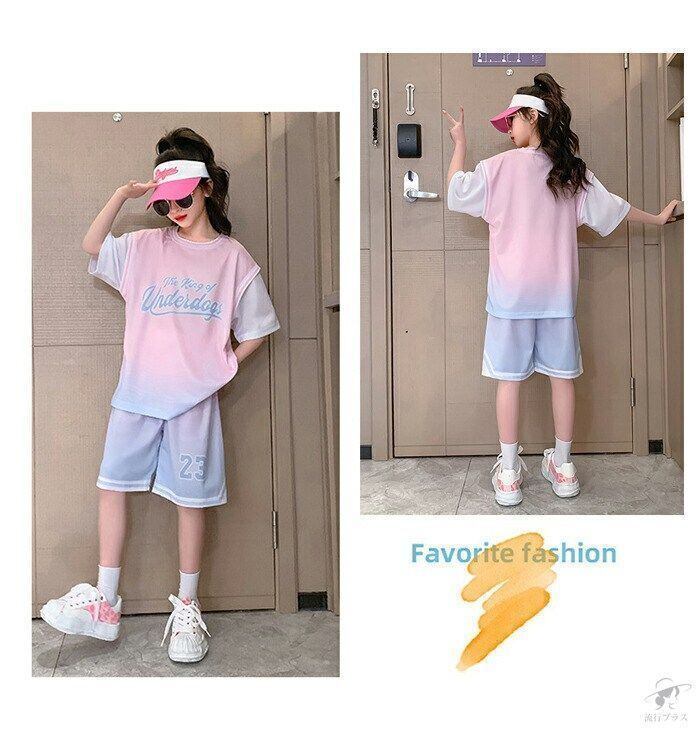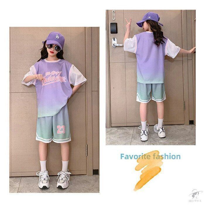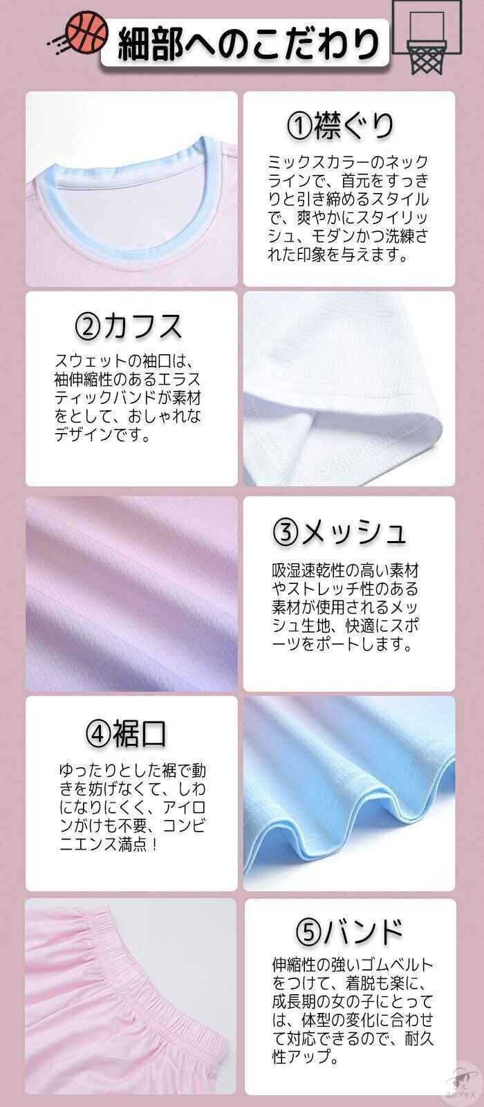 新品 スポーツウエア 上下セット 女の子 キッズジャージ 練習着 レッスン着 バスケットボール ダンス 子供服 半袖 袖縫いつけ仕様 幅広 ストレッチ 耐久 通気抜群 吸汗速乾 快適 kkkran