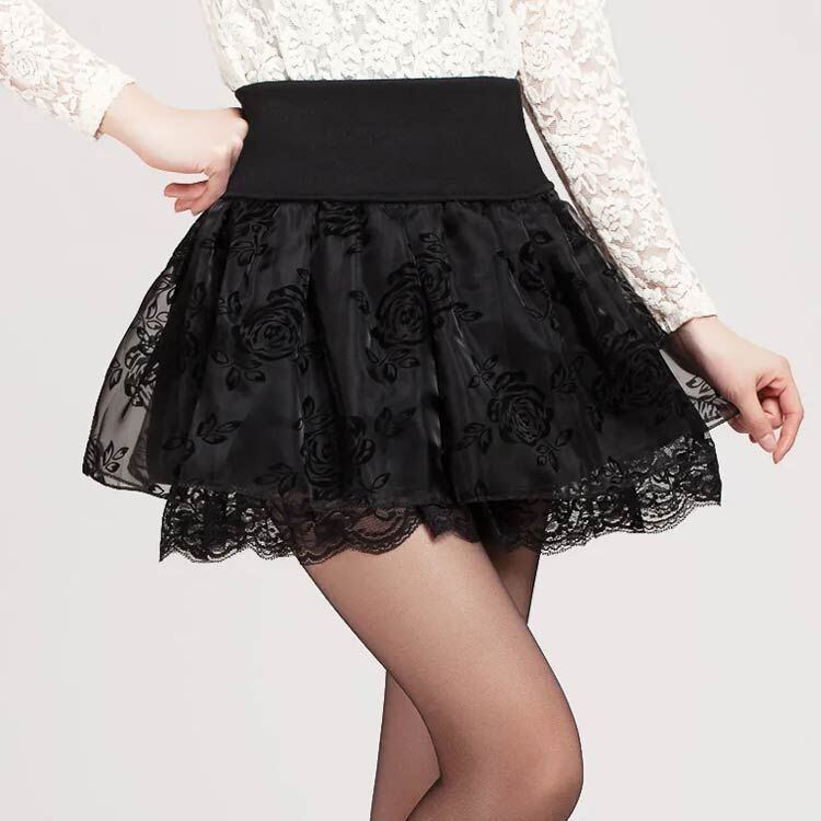 ボリューム感たっぷりのフリルレースミニスカートです。