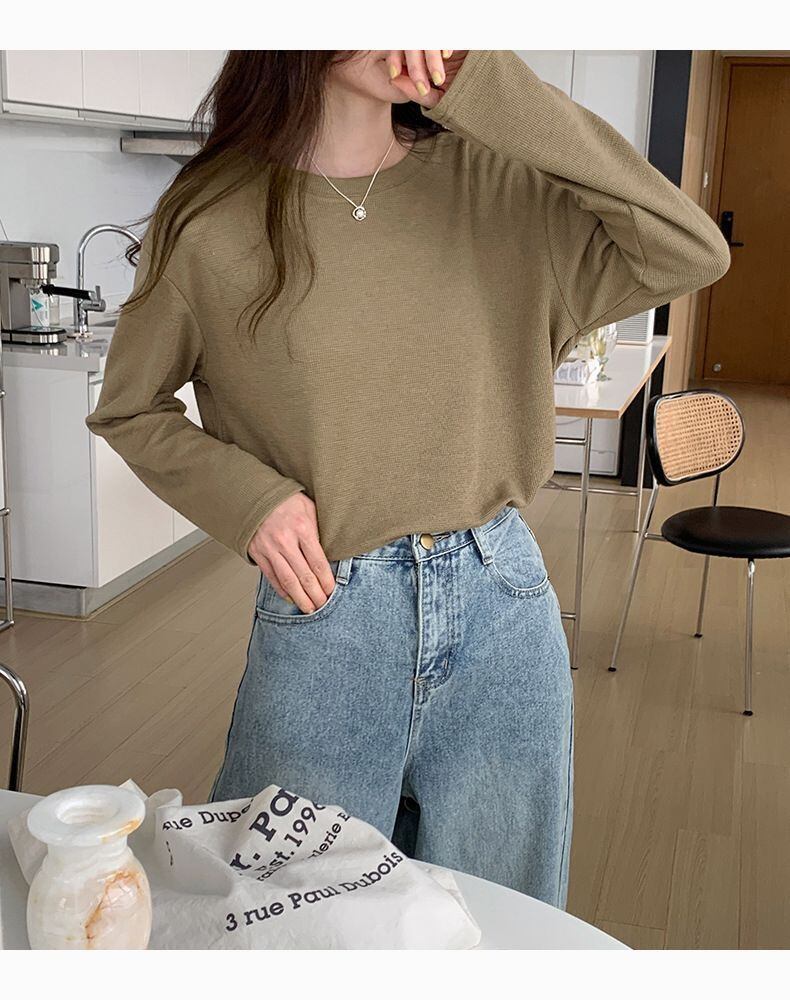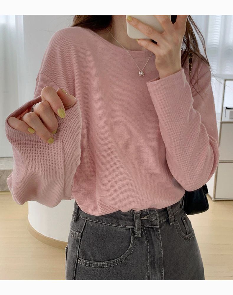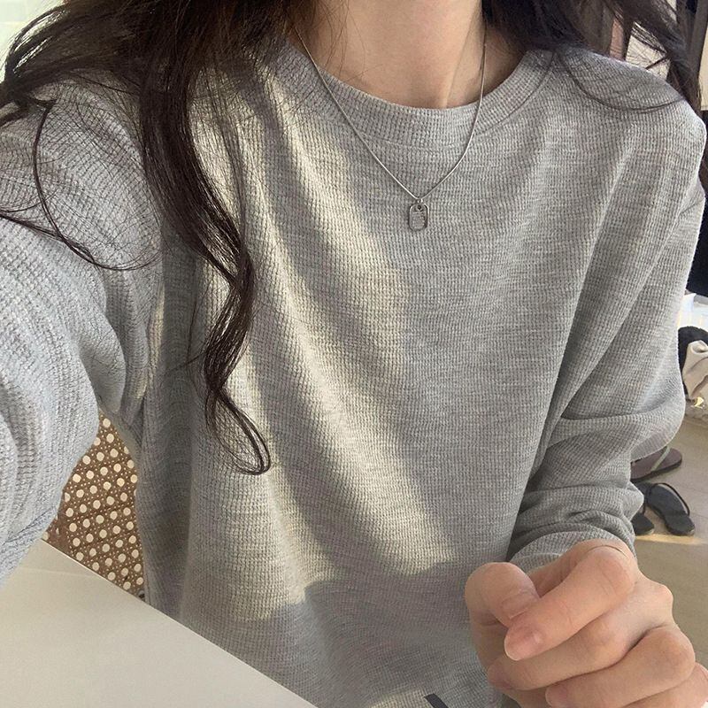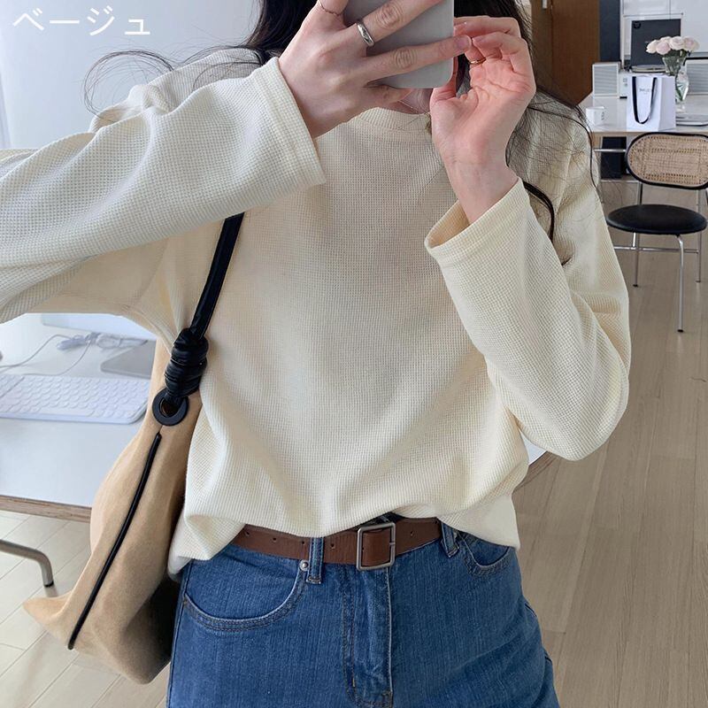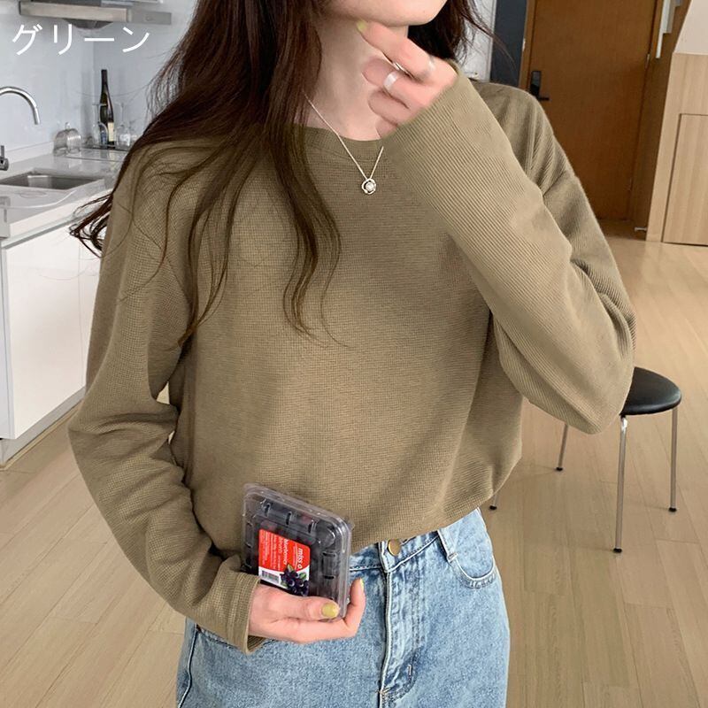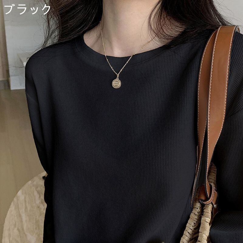 新品 Tシャツ レディース 長袖 ワッフル カットソー 長袖Tシャツ インナー 無地 トップス クルーネック チュニック 春服 Tシャツ カットソー カジュアル 柔らか シンプル kkkgoz
