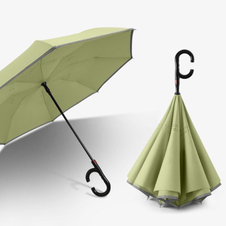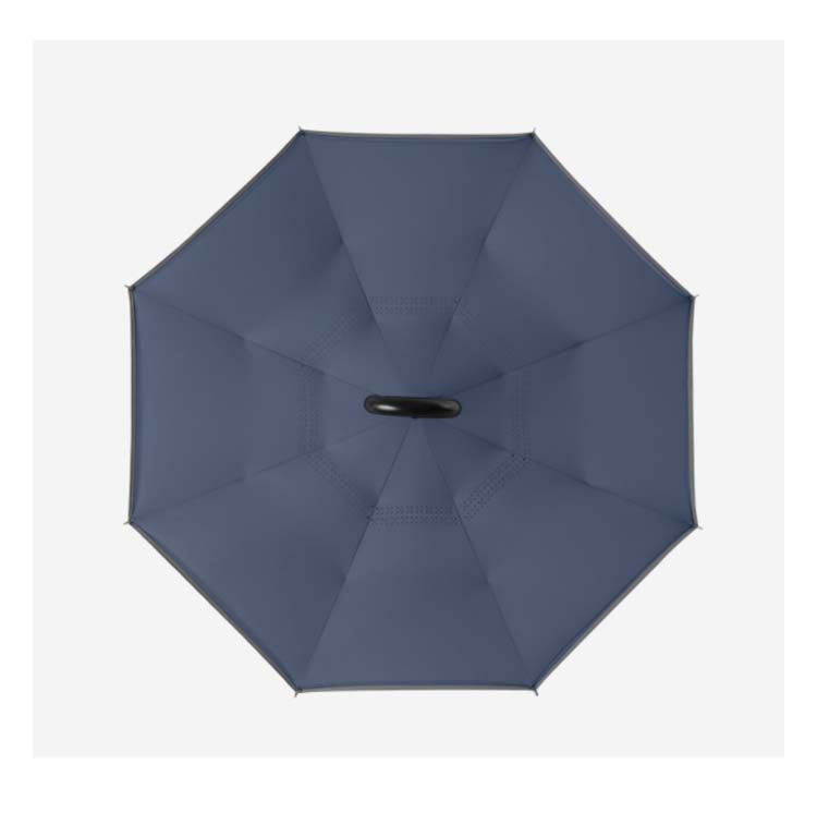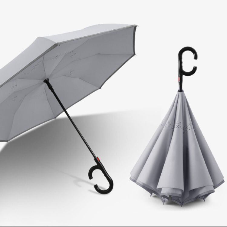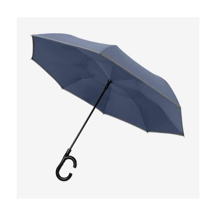 【逆折り式傘】逆さまに開いて逆さまに閉じる長傘です。水滴が内側に収納されのため、洋服や荷物が濡れることなくて周りの人にも迷惑なし。