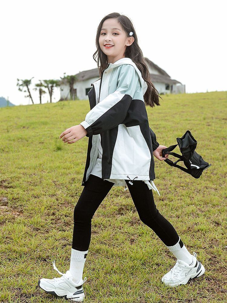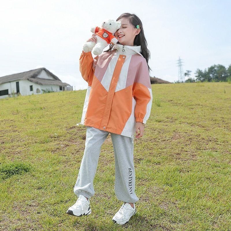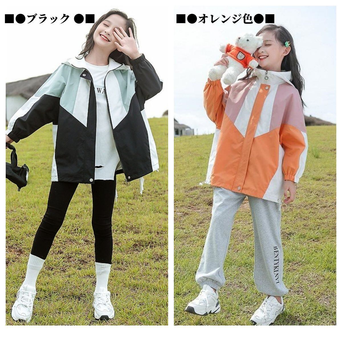 新品 マウンテンパーカー キッズ 女の子 ウィンドブレーカー ジュニア フード付き ジャケット スタジャン ブルゾン 子供服 防風 ライトアウター ジップアップ 薄手 配色 切り替え カジュアル お洒落 ガ kkkgzp