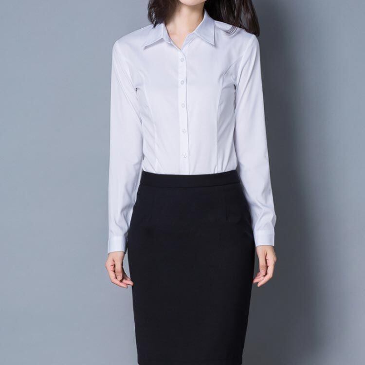 新品 シャツ レディース 長袖 Yシャツ ワイシャツ 制服 ビジネス オフィス フォーマル スーツ リクルート 就活 OL 事務服 無地 白 ブラウス 透けない 形態安定 ノーアイロン 細見え 白シャツ シ kkkgpl