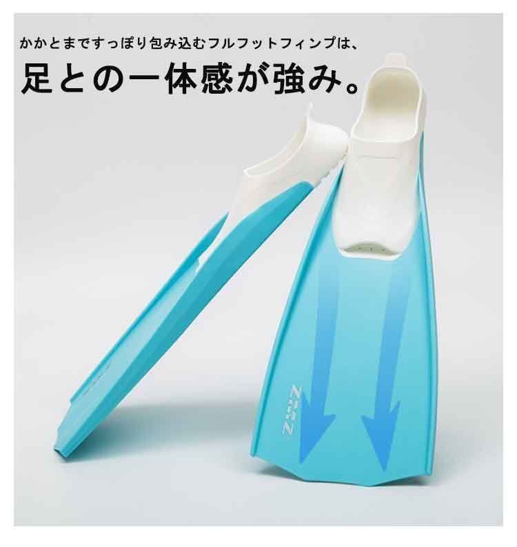かかとまですっぽり包み込むフルフットフィンプは、足との一体感が強み。