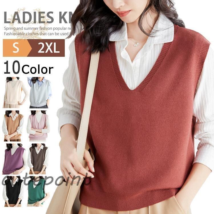 新品 ニット ベスト レディース 春 夏 Vネック ニットタンクトップ サマーベスト ニットベスト チョッキ プルオーバー おしゃれ 無地 kkkmlv