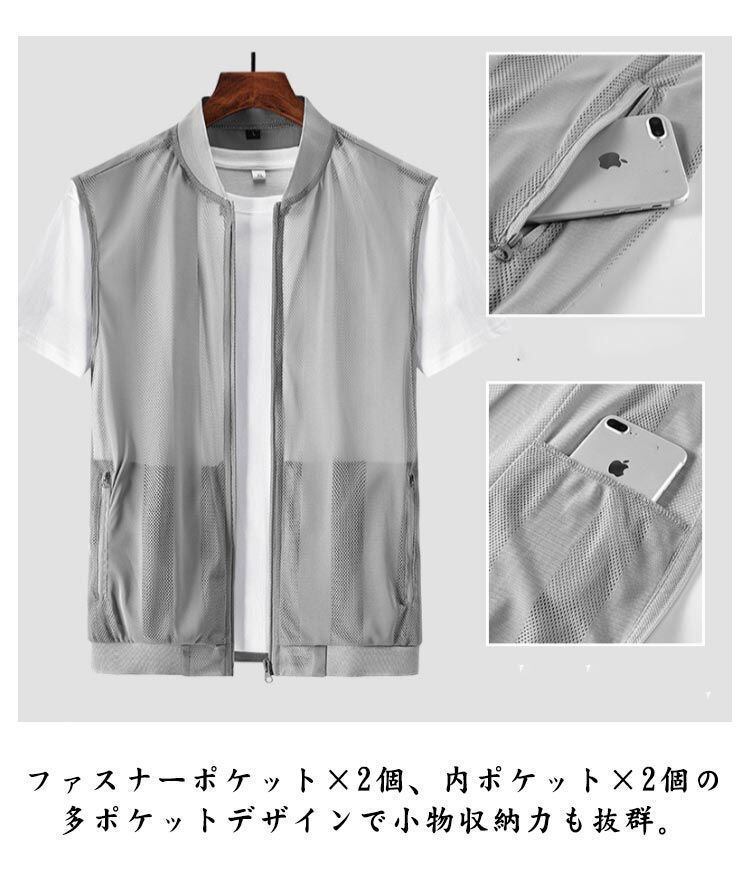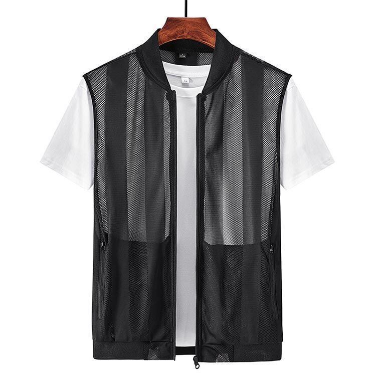 新品 速乾・通気・清涼 夏用 メンズベスト 薄手 軽い メッシュベスト メッシュ ジレ ベスト 立ち襟 透け感 前開き 涼しい 速乾 四つポケット 山登り ゴルフ スポーツ お釣り アウトドア 大きサイズ kkknwt