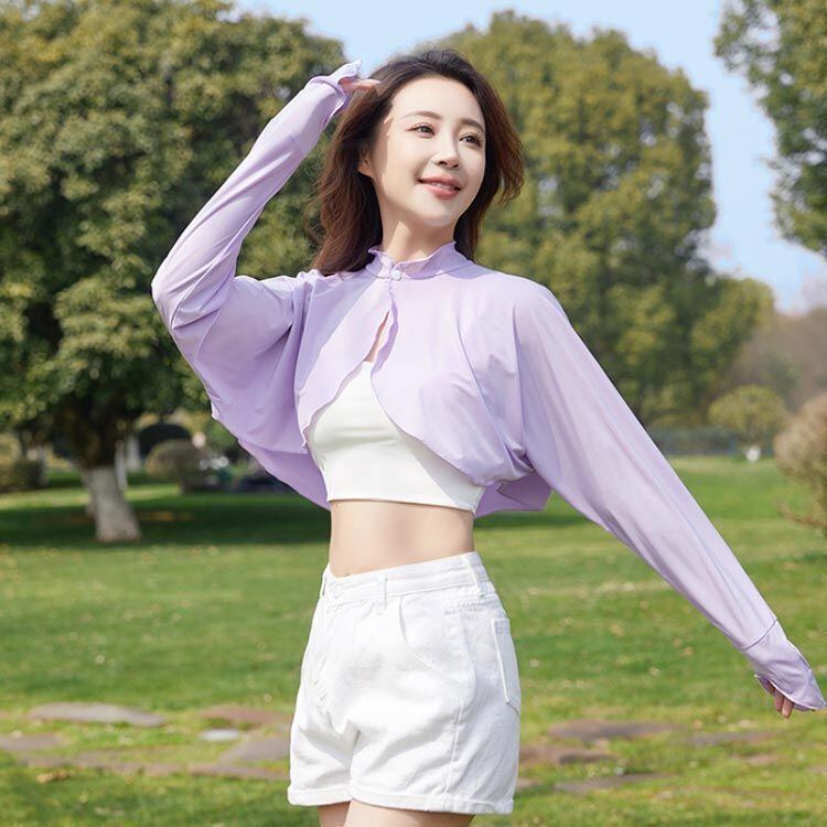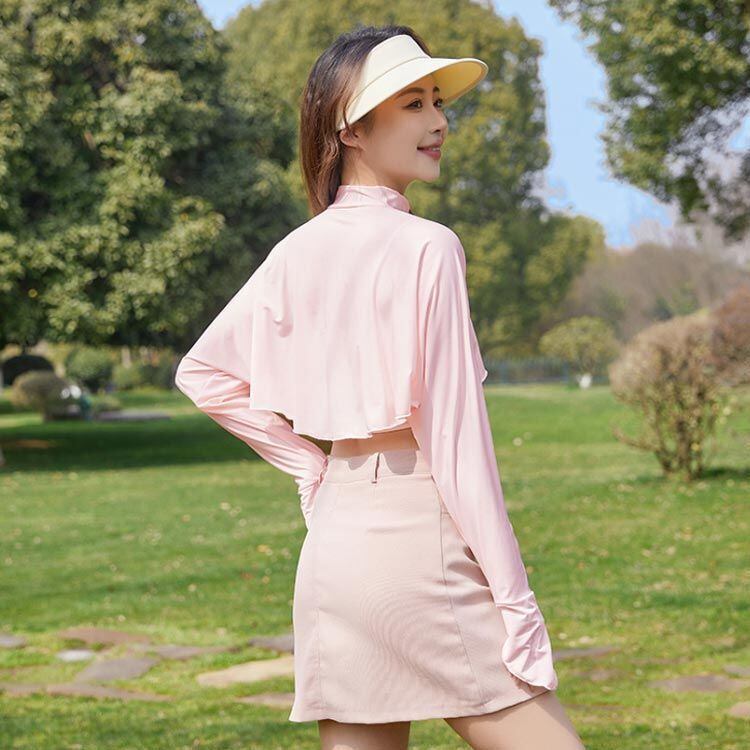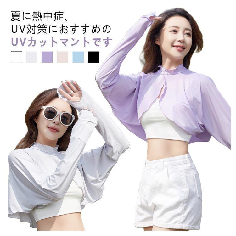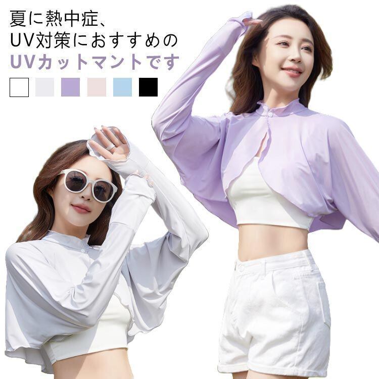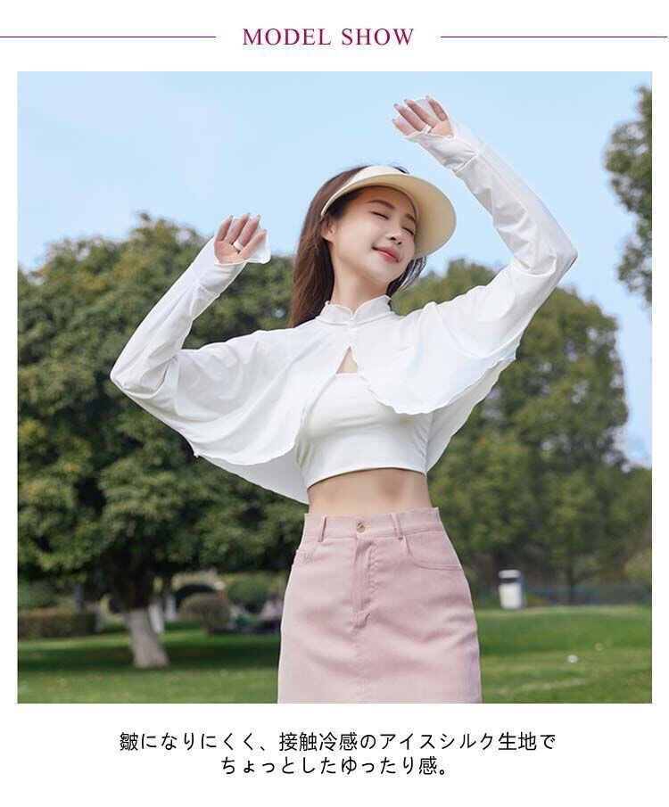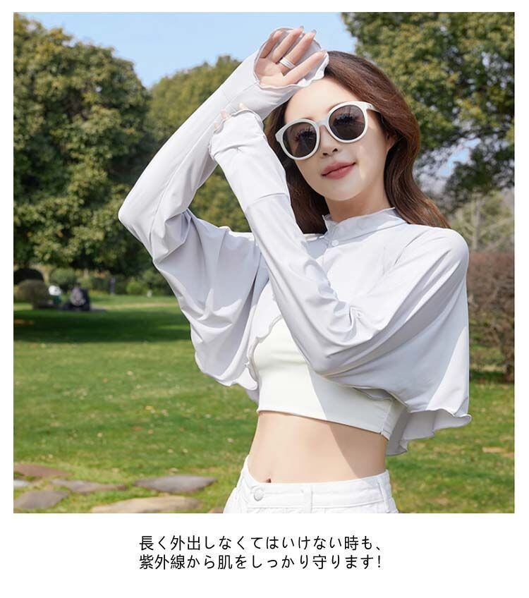 新品 襟付き レディース UVカット ゆったり マント カーディガン 冷感 UV パーカー ラッシュガード ショート丈 ライトアウター 可愛い 裾フリル 長袖 ポンチョ 日よけ 襟付き アームカバー 着る kkkhhr