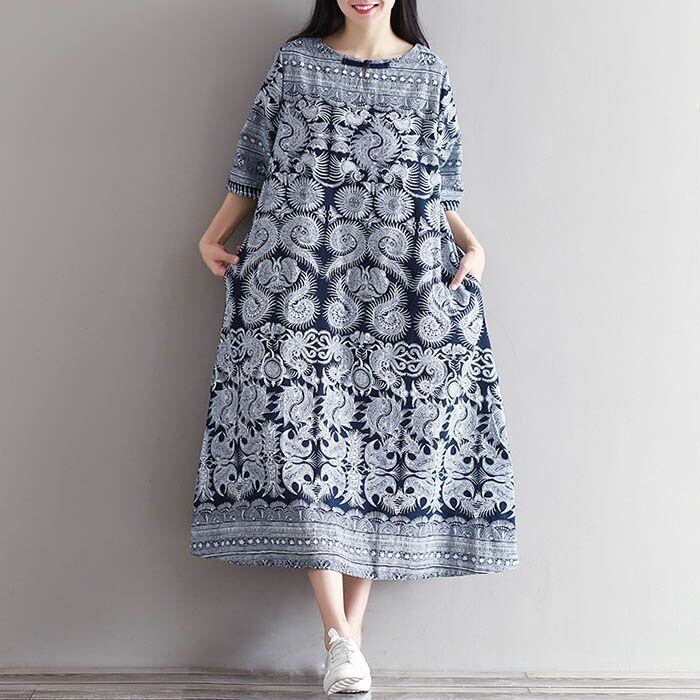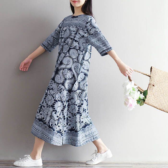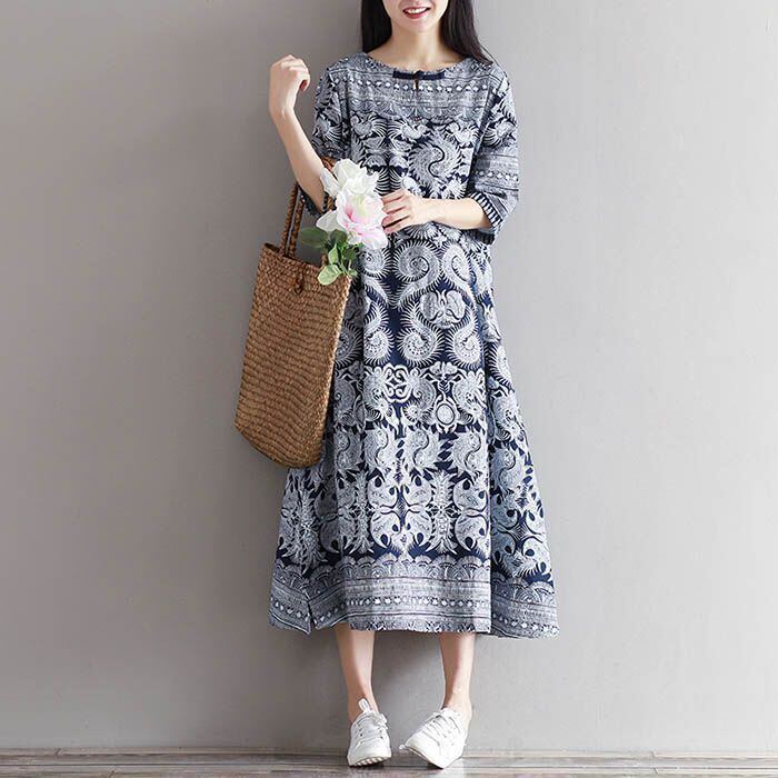 新品 ワンピース 夏 レディース ロングワンピース リゾートワンピース 七分袖 ワンピ 総柄 ロングワンピ 花柄 クルーネック 綿麻風 大きいサイズ 夏服 ミモレ丈 ワンピース エスニック風 リゾート きれいめ おしゃれ kkkrsk